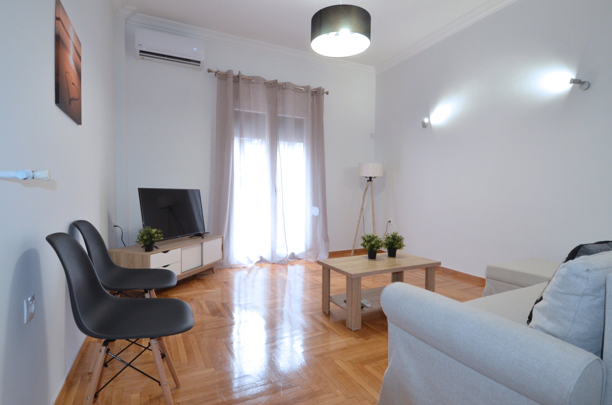 A big sunny apartment in the center of Athens, on the second floor, provides access to restaurants, supermarkets and shops. Is located about 4 km away from the historic center, between the beautiful Greek Orthodox Church St. Nicholas and the stunning Conservatory Opera Athens. This modern apartment can accommodate 5 guests (4 in two double beds and 1 more to a sofa bed).