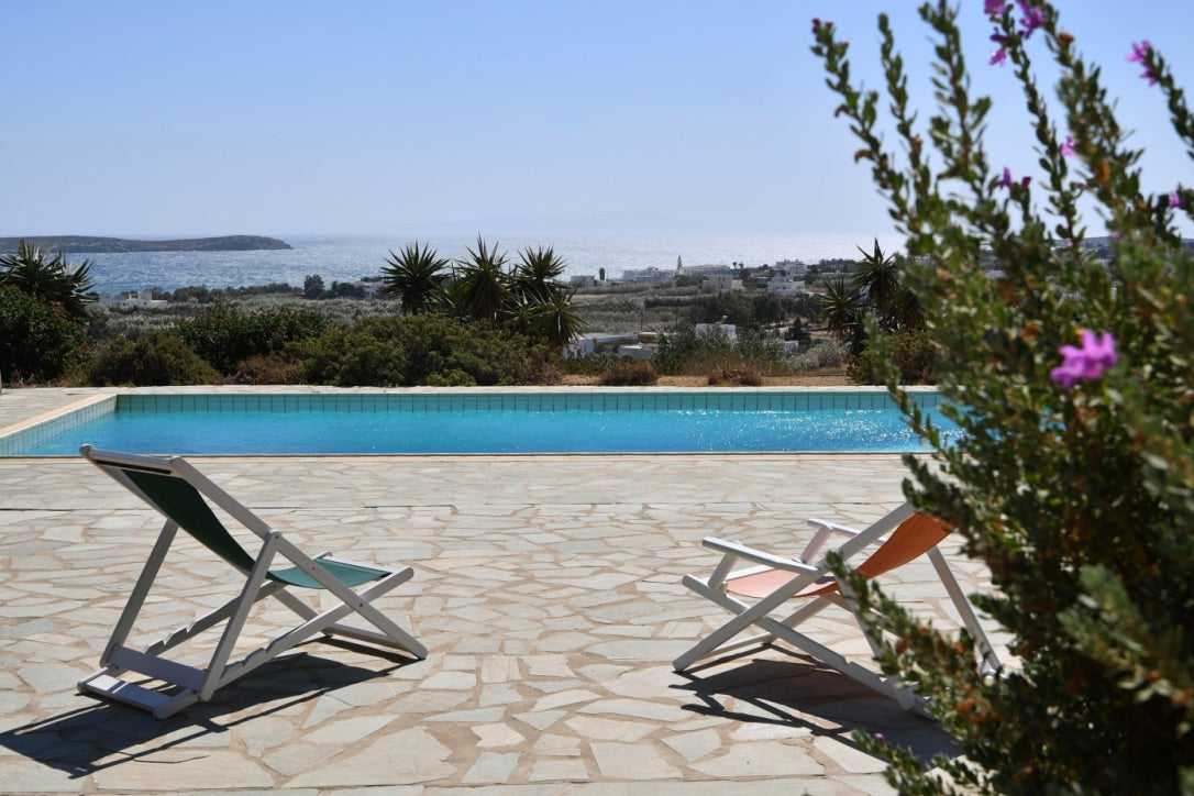The villa can accommodate up to 6 people. It is ideal for families with kids or group of friends. It is built in a minimal and traditional Cycladic architectural style.