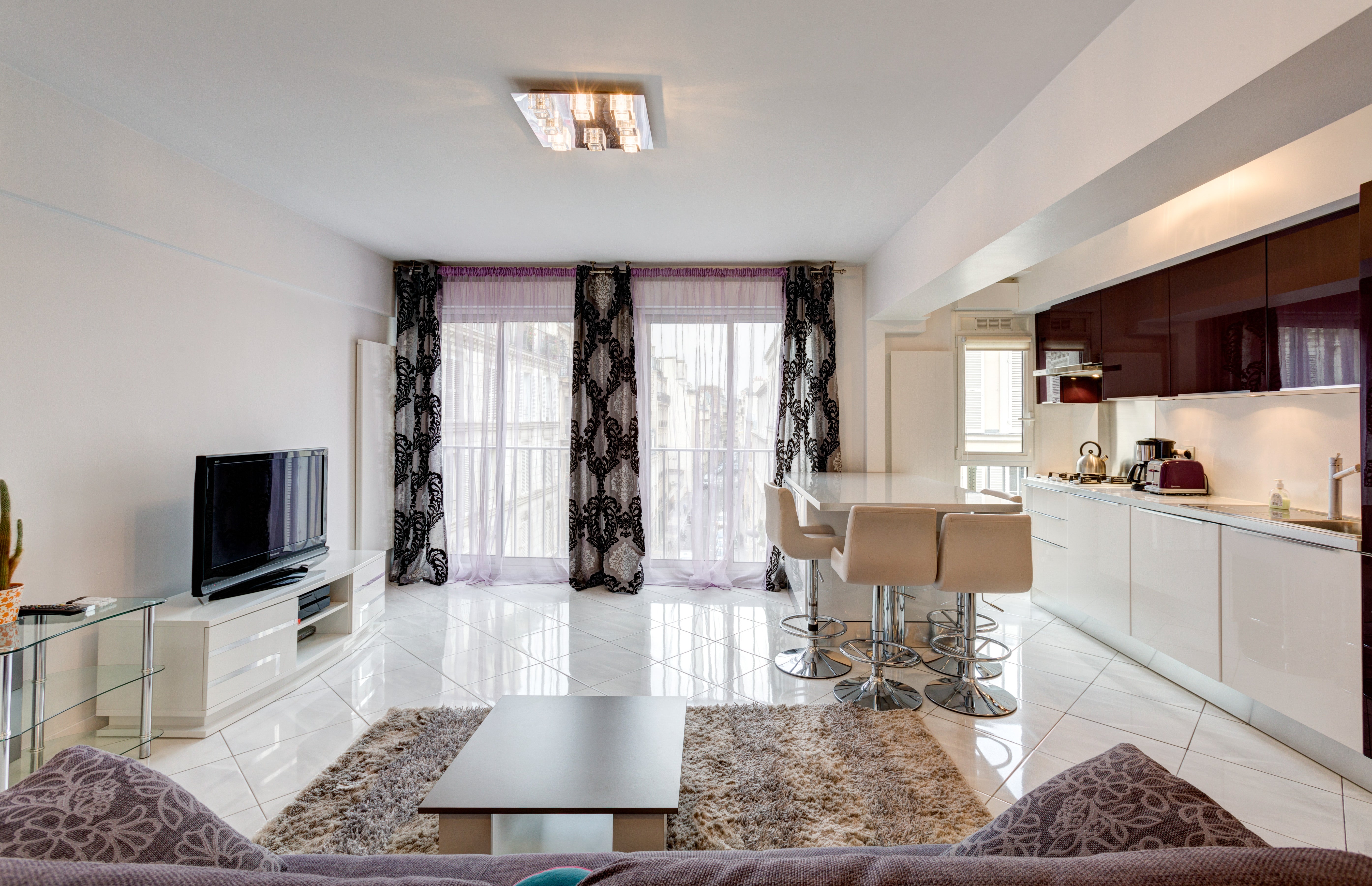 Ce superbe appartement de 54 m², de style contemporain, est situé au 4ème étage d'un immeuble confortable avec ascenseur, à 5 minutes à pied des Champs-Elysées, sur la fameuse rue Poncelet avec son marché ouvert et de nombreux commerces de bouche où vous trouverez absolument tout pour votre séjour au seuil de la porte : fruits, légumes, fromages, vins, foie gras, excellentes pâtisseries, viande, poisson, etc. Vous apprécierez sûrement ce beau quartier à l'atmosphère typiquement parisienne, la proximité de tous les sites touristiques, tels que l'Arc de Triomphe, la Tour Eiffel, la place de la Concorde, les jardins des Tuileries, l'Hôtel de Ville, la Cathédrale Notre-Dame de Pari Paris, France Beau 2-p. quartier Champs-Elysées Entire rental unit vacation rental best price 2408200