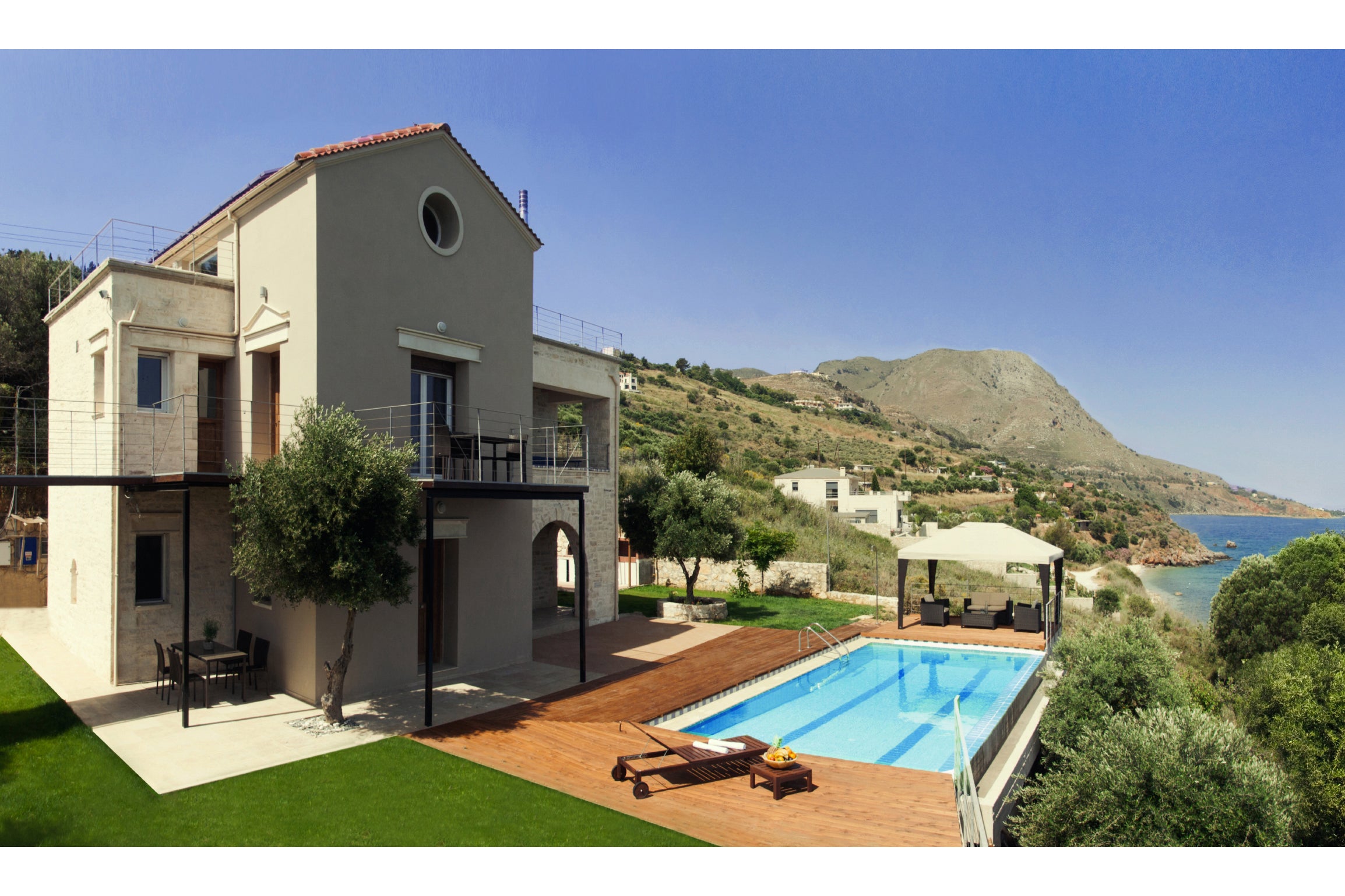 Arcolios Epavlis is a unique industrial style luxury villa of 160sqm builted entirely by stone with natural surrounding and olive groves. Located in Souda Bay Chania with spectacular sea view and only 35 meter distance from the beach.