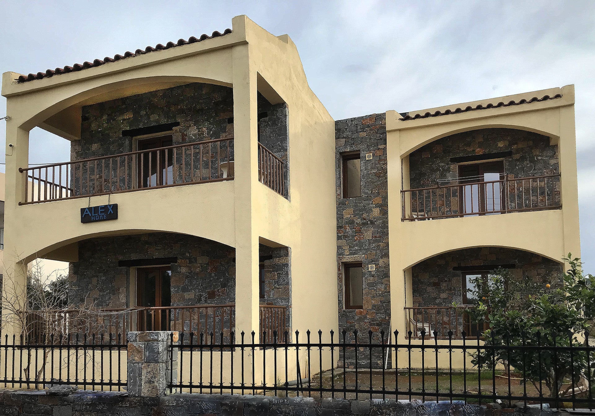Studiorna och lägenheterna på Alex har en eller två balkonger och utsikt över poolen, bergen eller Kretahavet. Alla har även ett pentry med kylskåp och kokplattor samt ett eget badrum med dusch. Värdeskåp i varje lägenhet.Swimming pool with children’s area, Free Wi-Fi in public areas and much more facilities. AC 2 euro/day, washing machine available once a week Barbecue available.