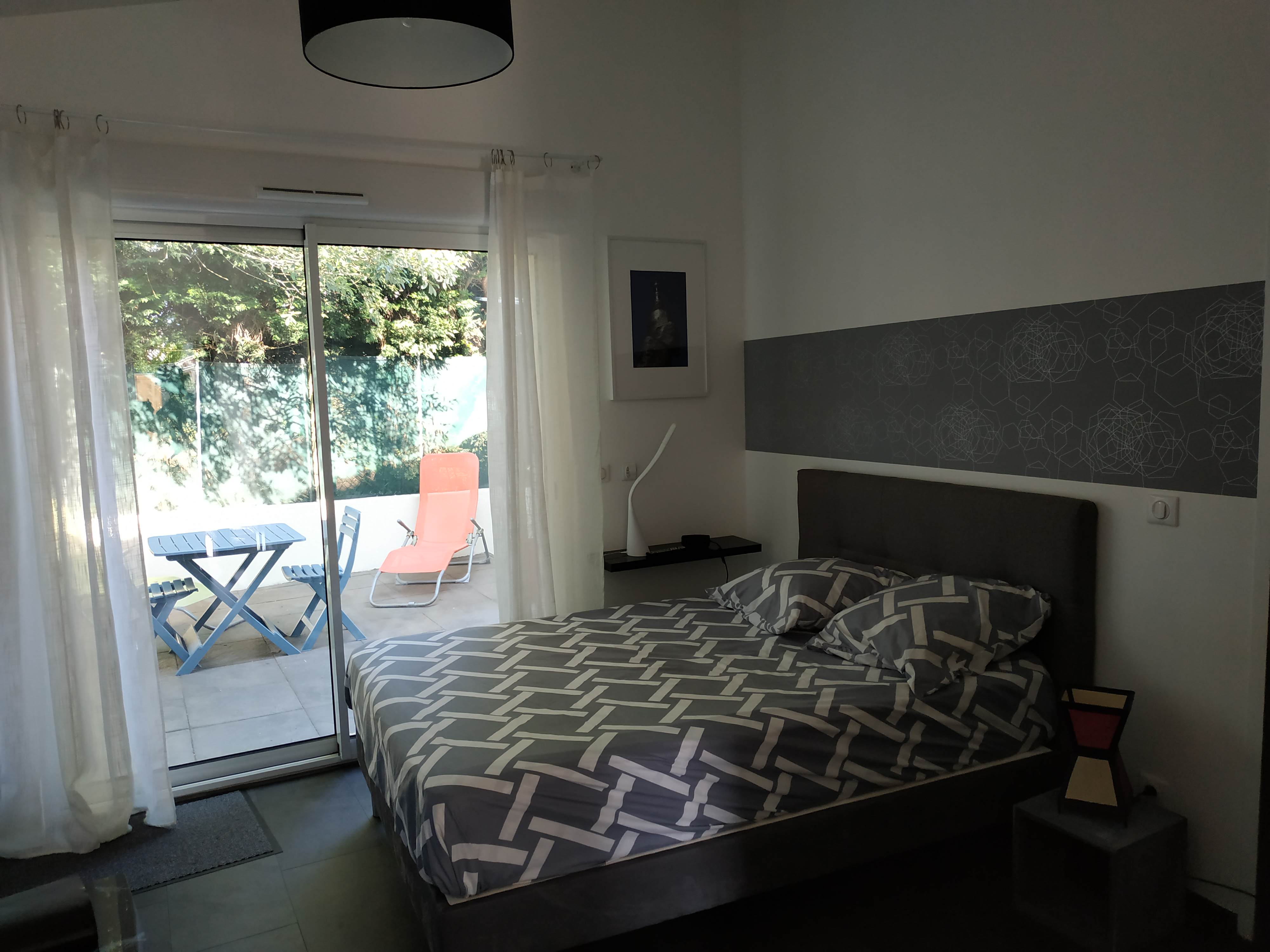 A SAINT-AUBIN de MEDOC, dans un quartier calme, location d'1 studio neuf meublé de 25 m2 (en mitoyenneté de notre maison) avec une entrée indépendante et une terrasse de 16 m2 permettant de déjeuner dehors pour 2 personnes (2 nuits minimum).