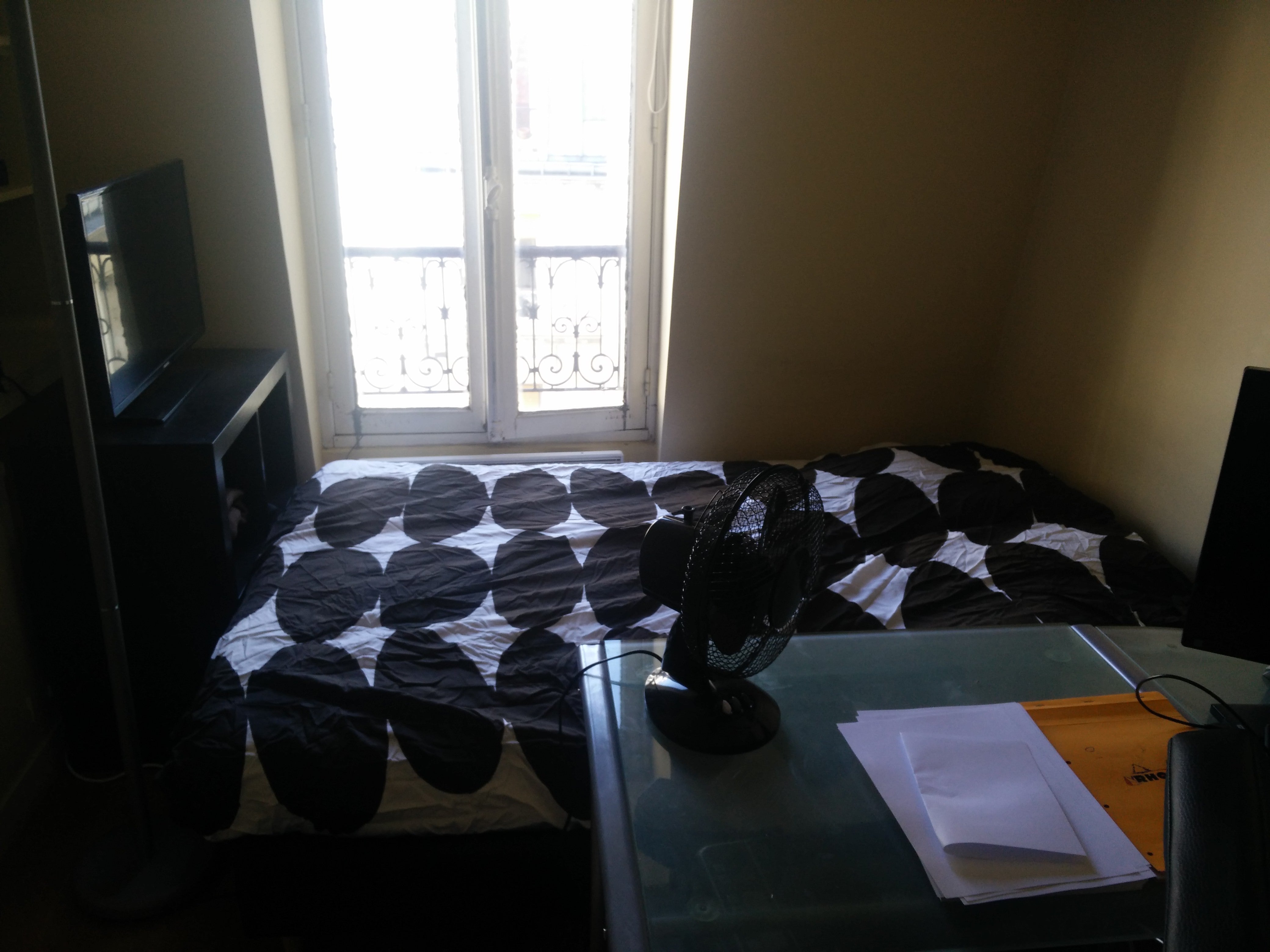 Belle chambre d'environs 10 m² avec un lit double une salle de bain ainsi qu'une télévision