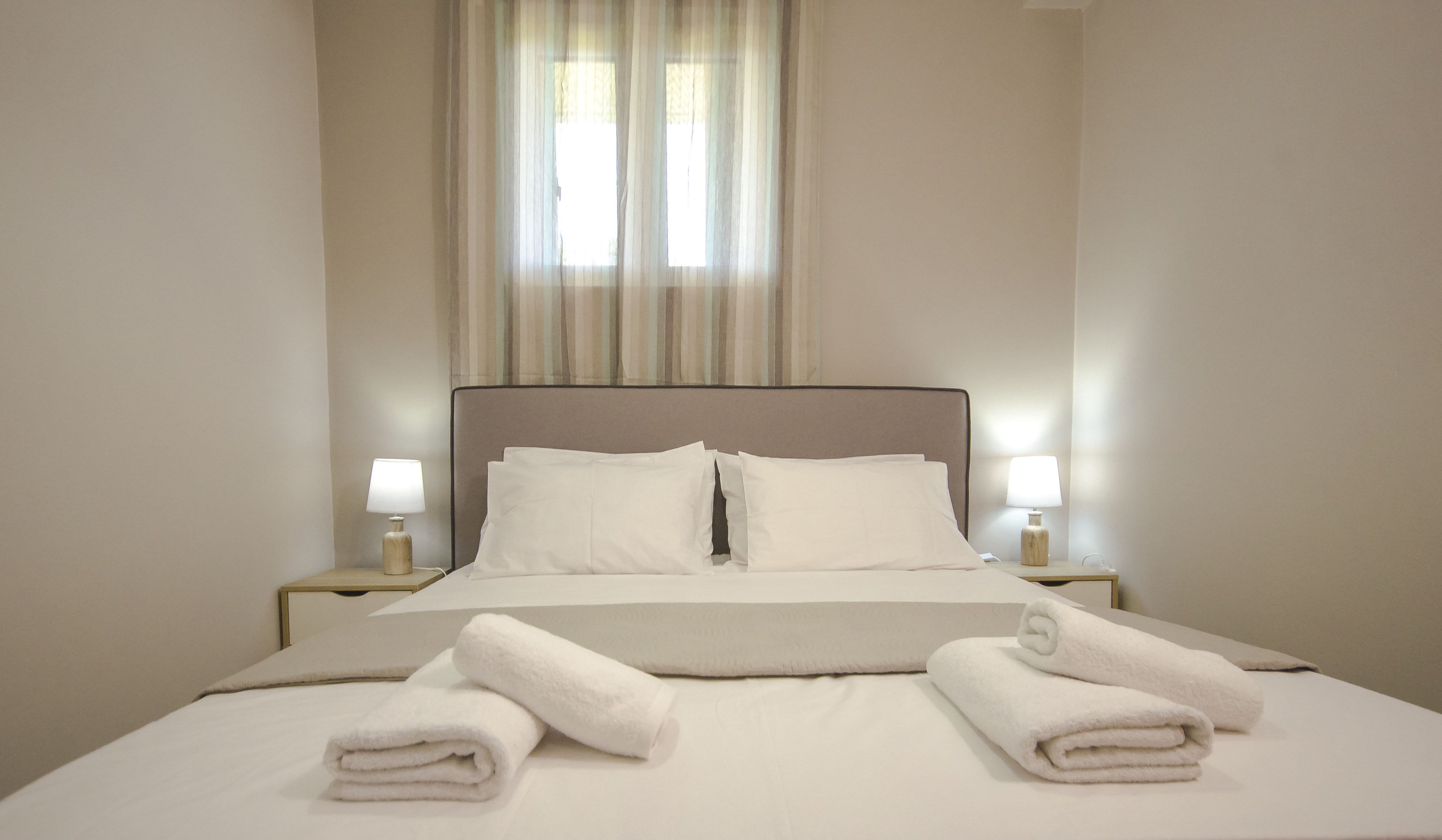 A room with two bedrooms, located on the ground floor. The first bedroom has a double bed and the second two single beds. It can comfortably accommodate four people in total, suitable for families with childrens. The room also has private kitchen, bathroom with shower and is air-conditioning.