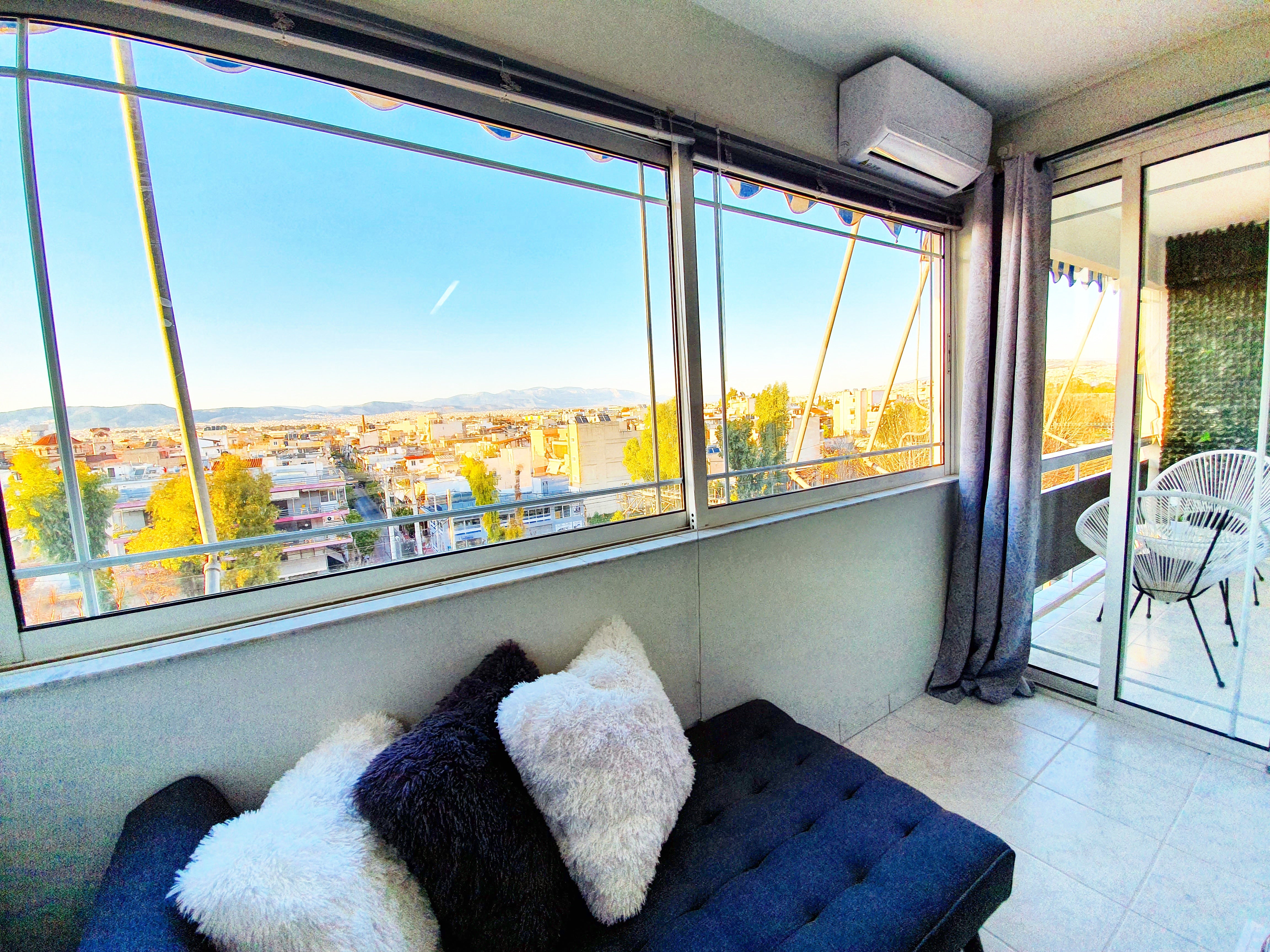 Beautifull panorama house 250m from suburban train (directly from airport El. Venizelos or Piraeus port),with 2 bedrooms, 1 living room,1 bathroom and 1 storage room.The house is 100m from Teleperformance and Athens heart mall,1.8km from Gazi, 3km from Monastiraki and 4km from Acropolis.The house has free Wi-Fi and Netflix to all monitors, equipped with all comforts for your easily hospitality.