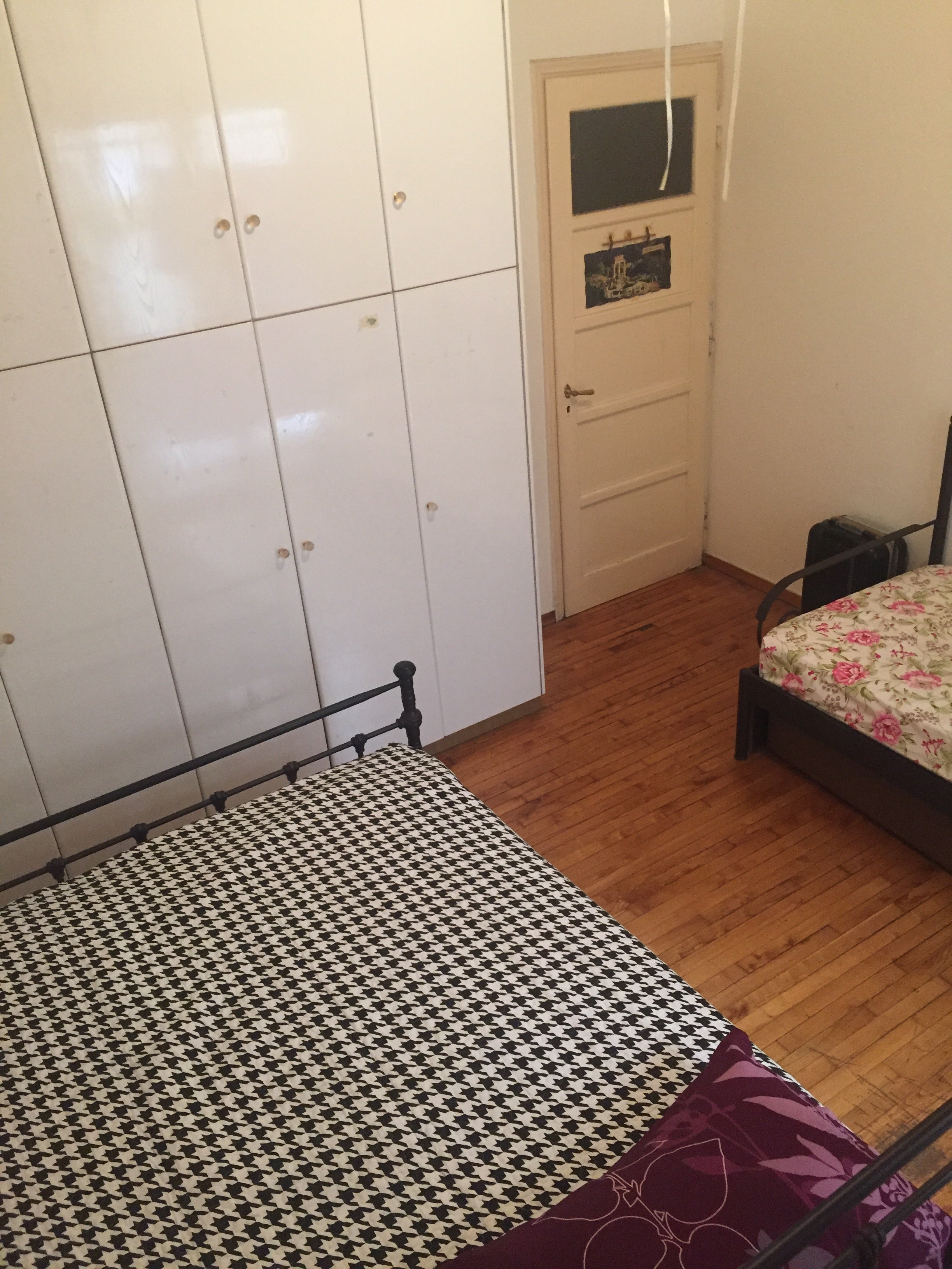 Chambre dans appartement se trouvant au centre de la ville d'Athènes. Quartier calme,immeuble sécurisé. A 8 minutes du metro Victoria et 1 minute du bus. Commerces à proximité en journée et de nuit. Chambre qui se ferme avec une clé. Ils pourront utiliser la salle de bain, la cuisine ainsi que le salon, le tout étant partagé. Seule la chambre est privée. Une seconde chambre est disponible dans l'appartement, celle ci peut être louée au même moment par quelqu'un d'autre ou par vous même.