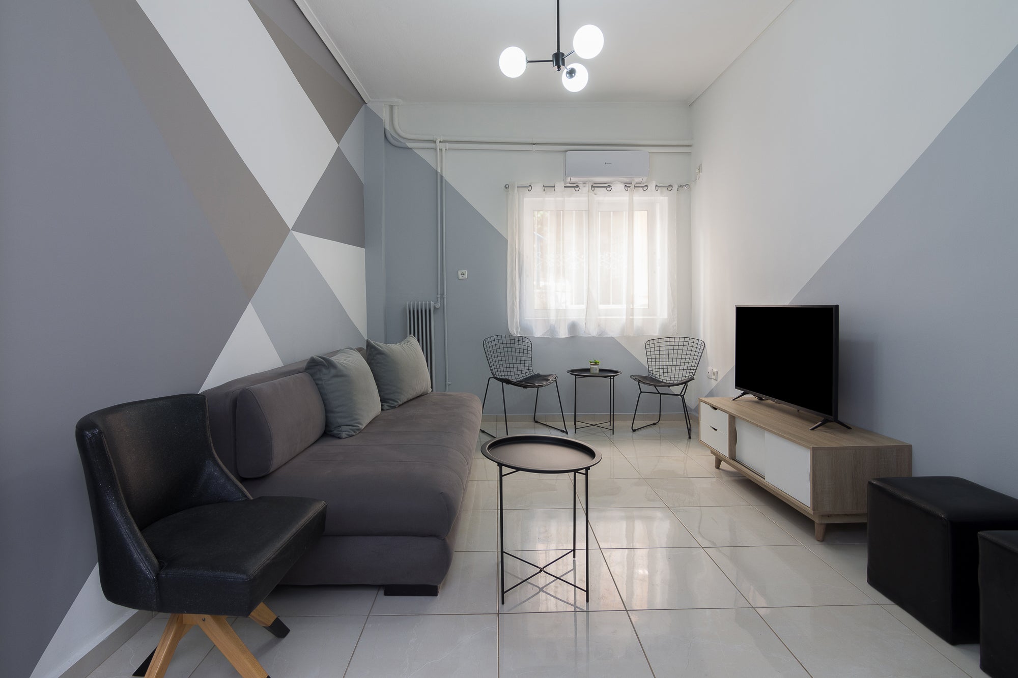Enjoy an experience in this beautiful cozy place located in the center of Athens. Modern living room in shades of gray and a bright bedroom with vivid red shades! In a very good location for attractions, museums, shops and MMM.