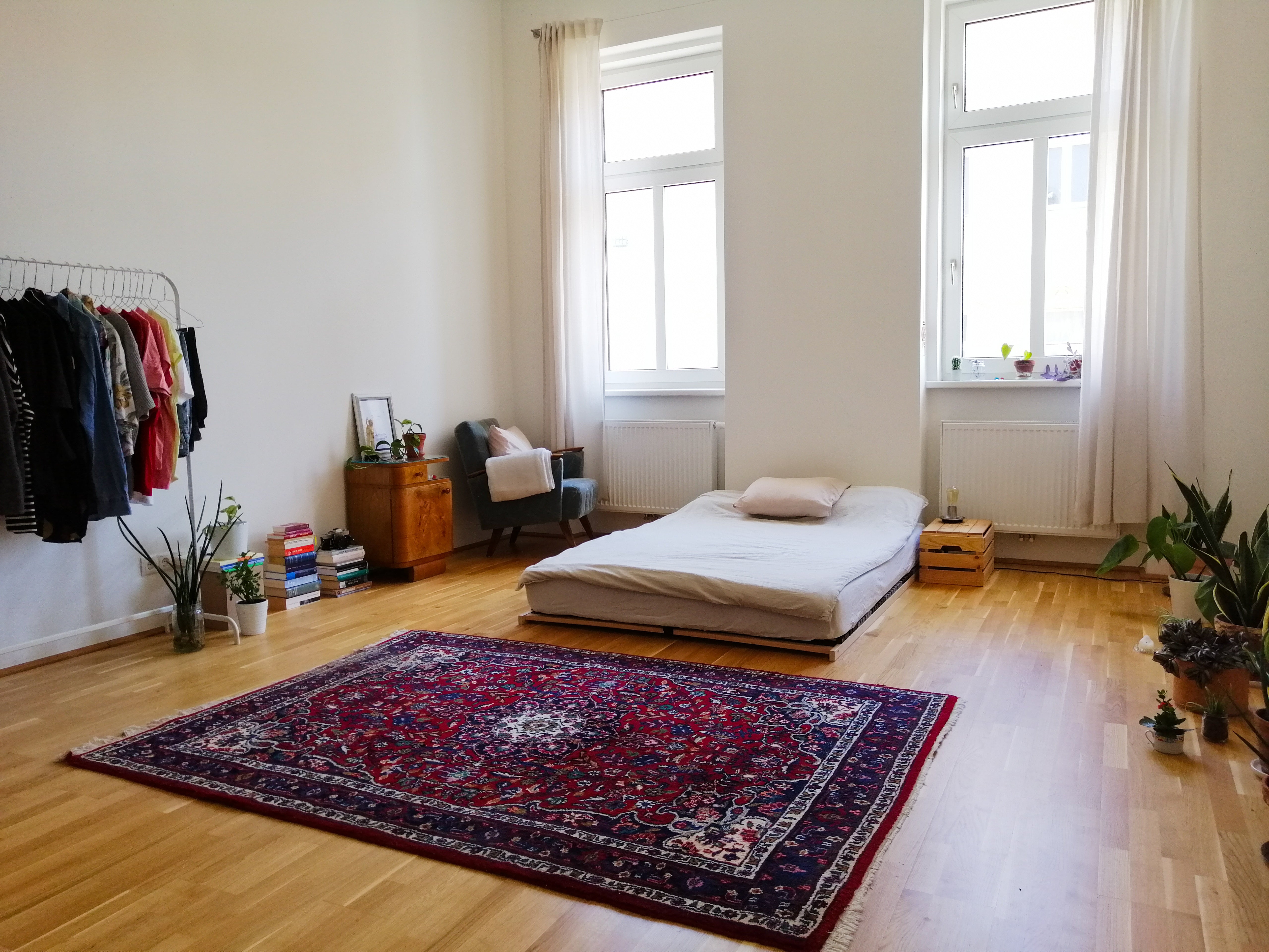 dieses Zimmer befindet sich in einer WG mit einem zweiten Menschen. Es gibt gemeinsam genutzte Räume, wie die Küche, das Badezimmer und ein separates WC. Das Zimmer ist sehr groß und bietet genug Platz für 2 Personen. Morgens kommt die Sonne durchs Fenster und am Nachmittag ist man, einmal über die Straße gehüpft, im Augarten. Der Prater, als auch der Donaukanal befinden sich ebenfalls in Spaziergangsweite, sowie öffentliche Verkehrsmittel. Eine Straßenbahn ist direkt vor der Haustür. (: Vienna, Austria Zimmer am Augarten(: Private room in rental unit vacation rental best price 657749970476861389