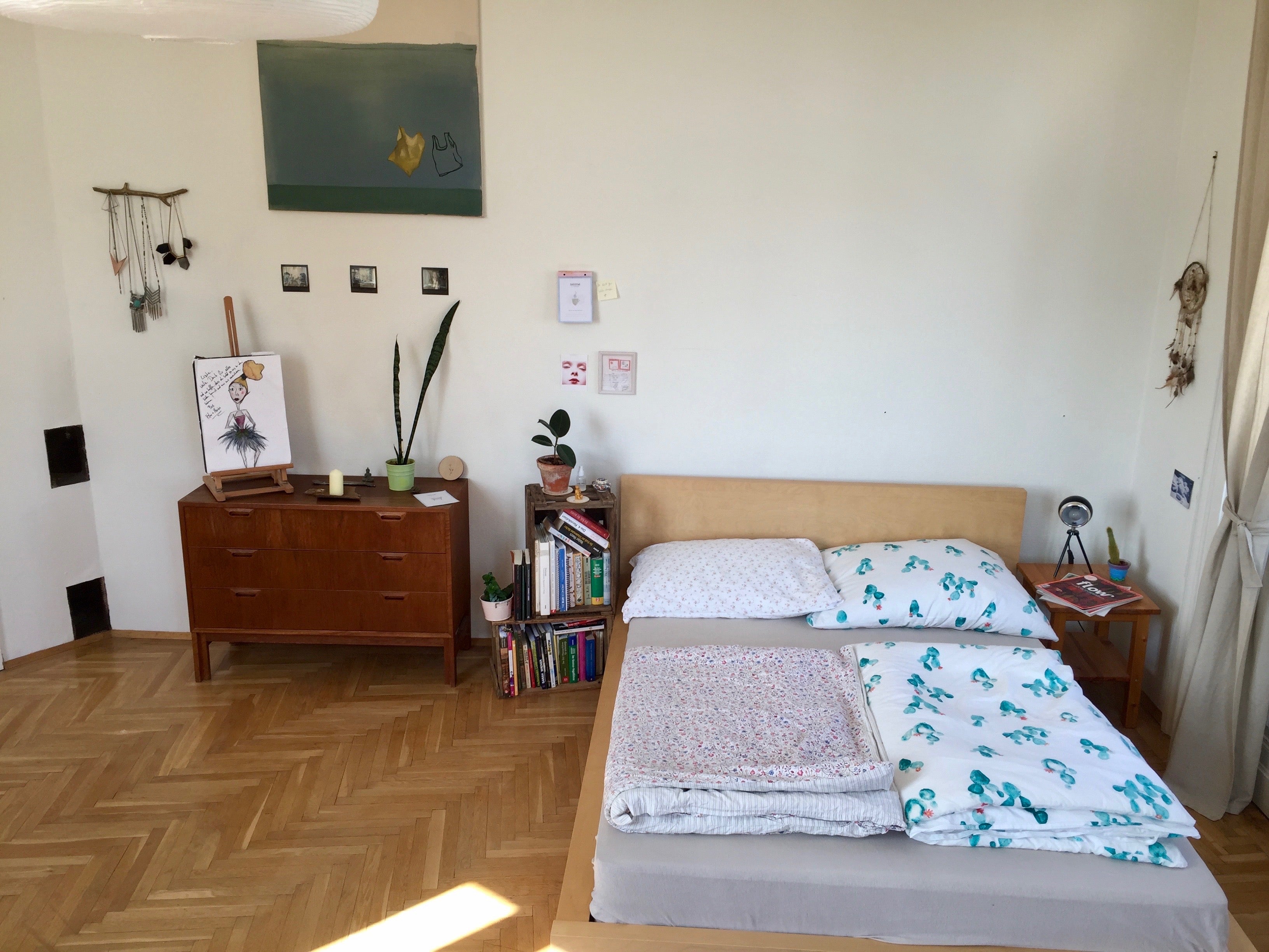 Wichtig ist zu erwähnen, dass die Dusche an Annas Zimmer grenzt. Somit muss man einmal durch ihr Zimmer durch um zu duschen (die Toilette grenzt allerdings am Flur, das ist also kein Problem :). Stören tut das aber generell keinen und man kommt sehr gut damit klar. Vienna, Austria Wunderschönes großes Zimmer in Altbauwohnung Private room in rental unit vacation rental best price 23831312