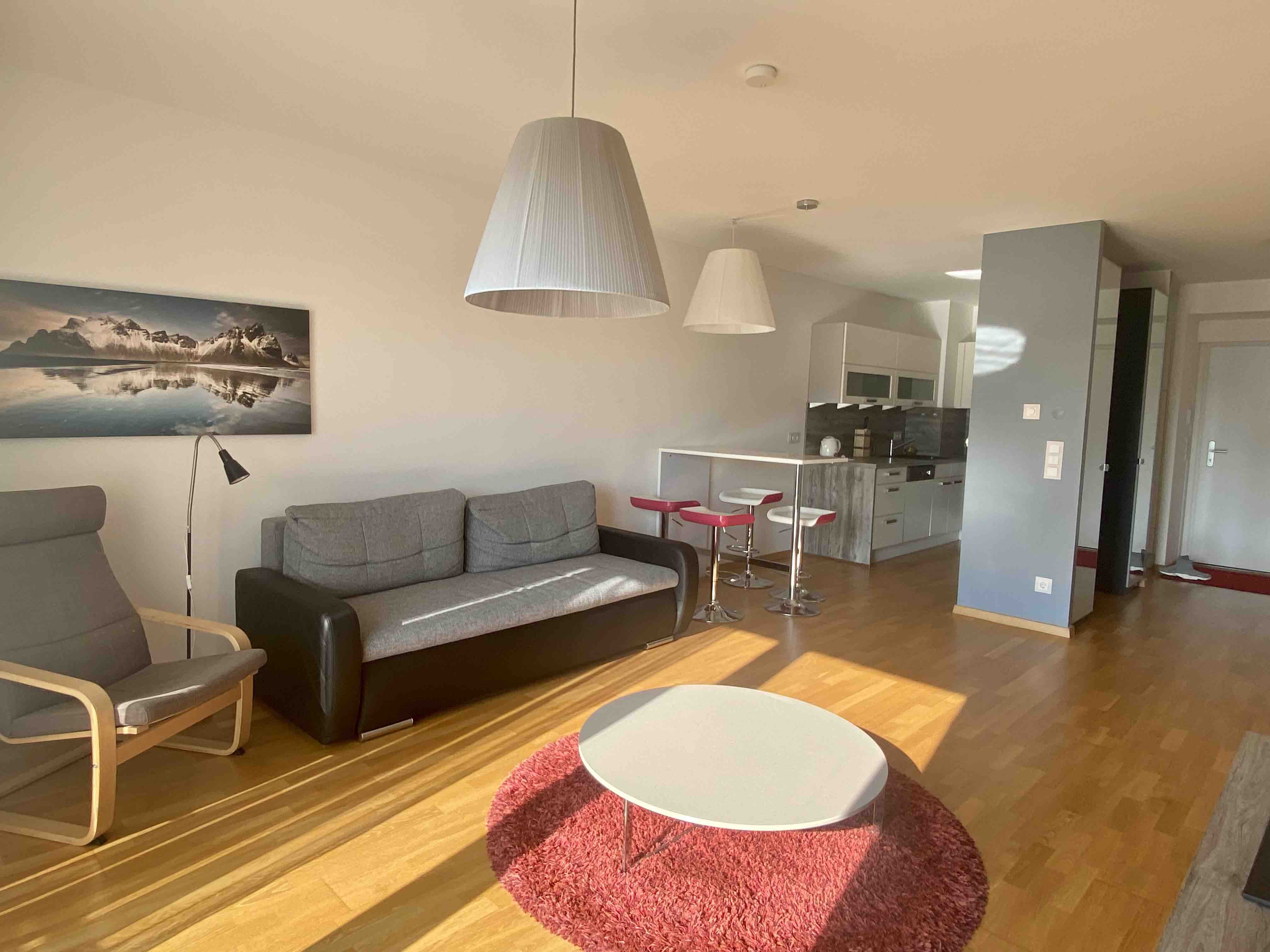 Die moderne Wohnung liegt im 6. Stock mit tollem Fernblick und schöner Loggia. Es ist eine geschmackvoll und hochwertig möblierte Wohnung, in der man sich sofort wohlfühlt. Man braucht nur die Koffer auspacken und ist im neuen Zuhause.
