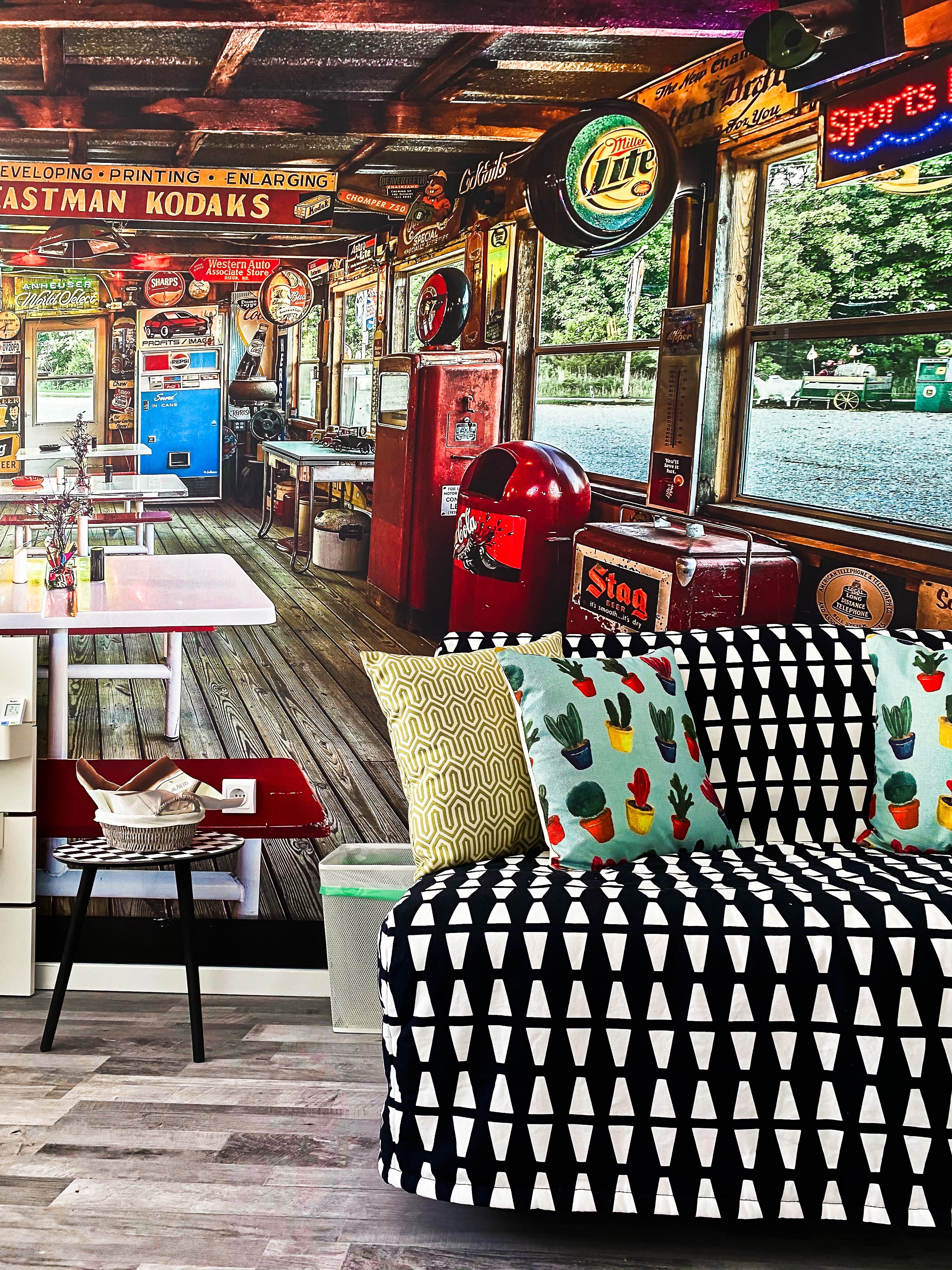 Hey! My apartment is well equipped with anything you would need for a short vacation or also for a longer stay. The many colors and the amount of detail all wrapped up in a vintage/retro design provides a very comfortable ambience for my guests: The "American - dinner" type of kitchen with all the red colored details, the old fashioned vintage lights and tubes in the bathroom and the urban styled living/bed room makes you feel modern. I tried to design the apartment in a very simple way.