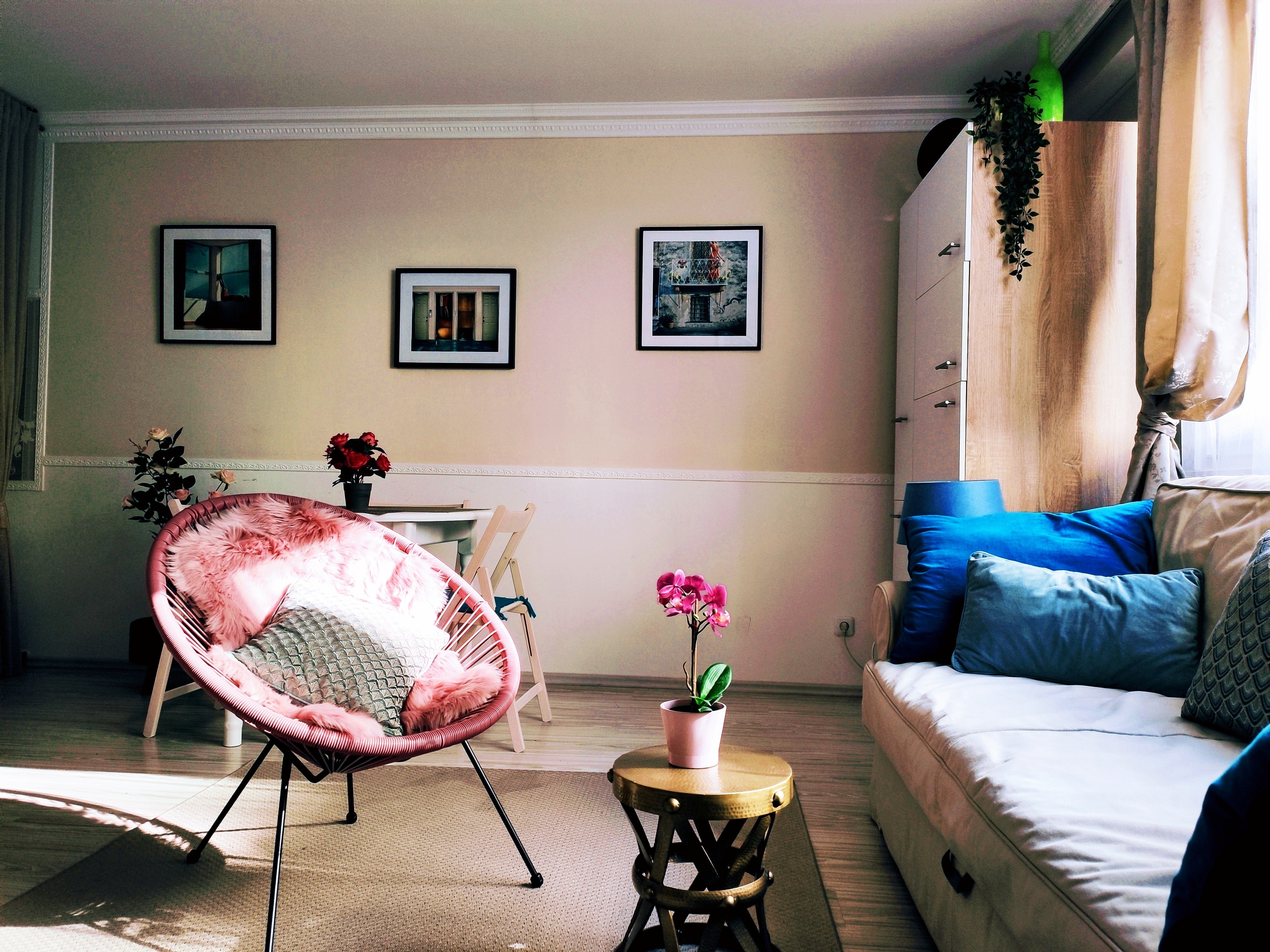 Schön eingerichteter Wohnraum mit Schlafcouch, sehr bequemer Sessel, Essplatz, kleiner Schreibtisch und Fernseher, ein Schlafzimmer mit Boxspringbett Vienna, Austria Lovely Apartment 3 Station to Hot Spots Entire rental unit vacation rental best price 30464539