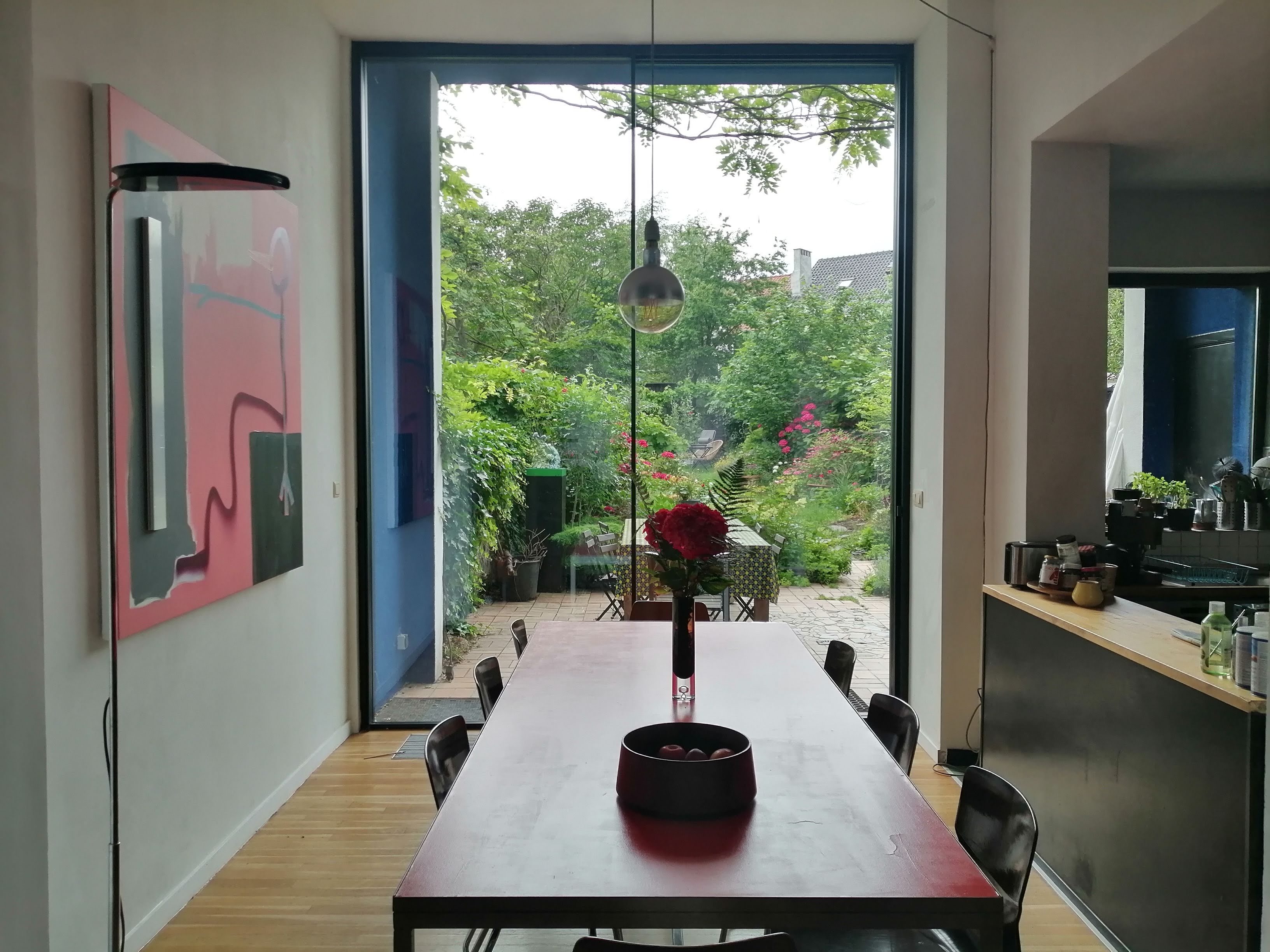 Maison lumineuse et calme avec terrasse et jardin dans quartier agréable très vert et en même temps proche du centre ville. Une cabane au fond du jardin permet de se retirer pour avoir un peu de calme... Une grande chambre avec lit double et 2 chambres enfants (1 avec un lit double et une avec un lit en mezzanine).