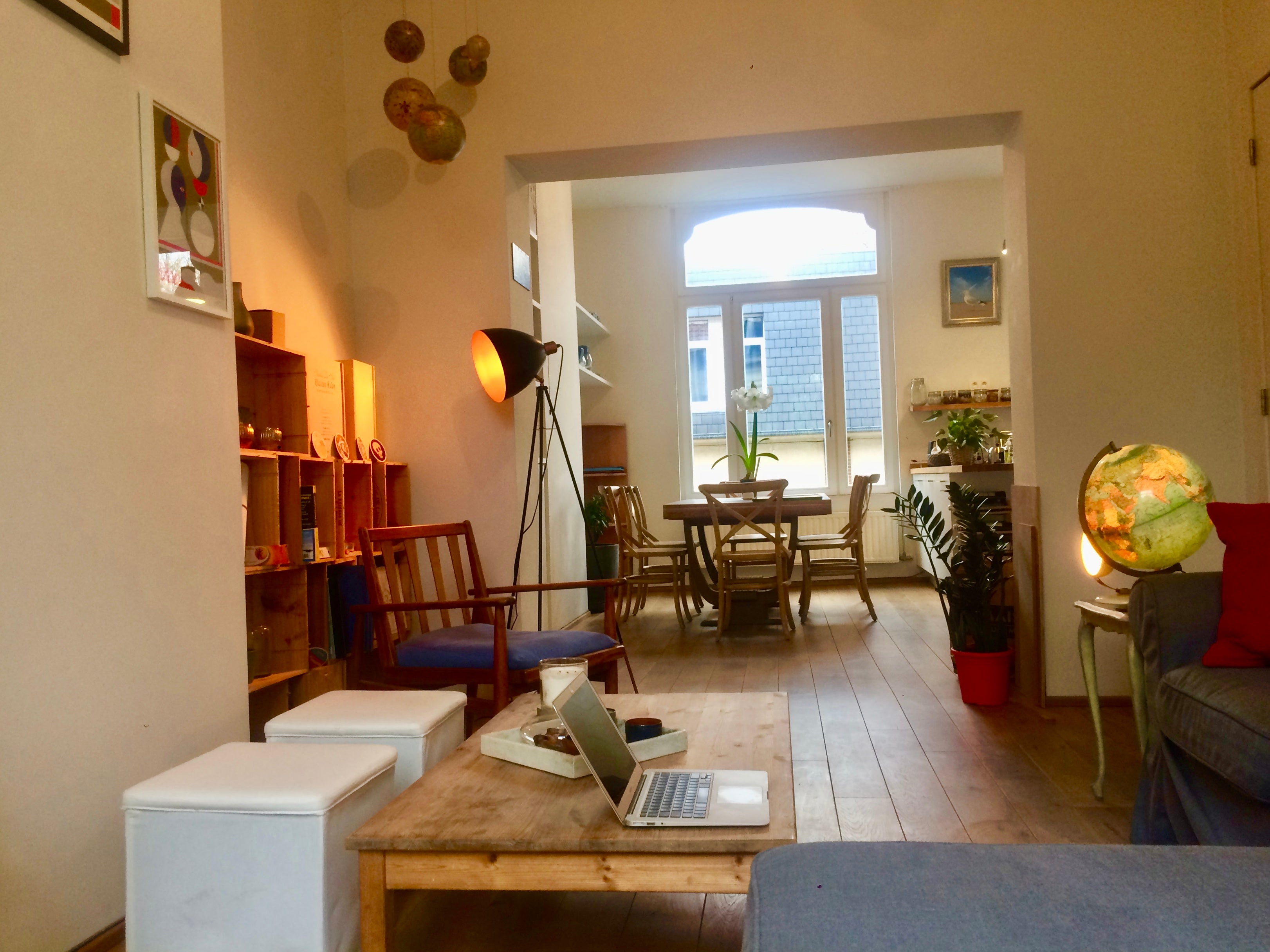 Our recently renovated Duplex (110m2) is ideally located, in a typical “Brussels style” building, in the heart of the most prized area: Le Chatelain (Ixelles/Saint-Gilles). This bright apartment w/2 floors, a terrace, a bathtub and a new home office (2022) is in a peaceful one-way street with restaurants, shops and bars. Trams/buses are only 50m away but you'll be walking-distance from most attractions and "green zones". Brand new bed (Super King Size 200cm X 210 cm)!