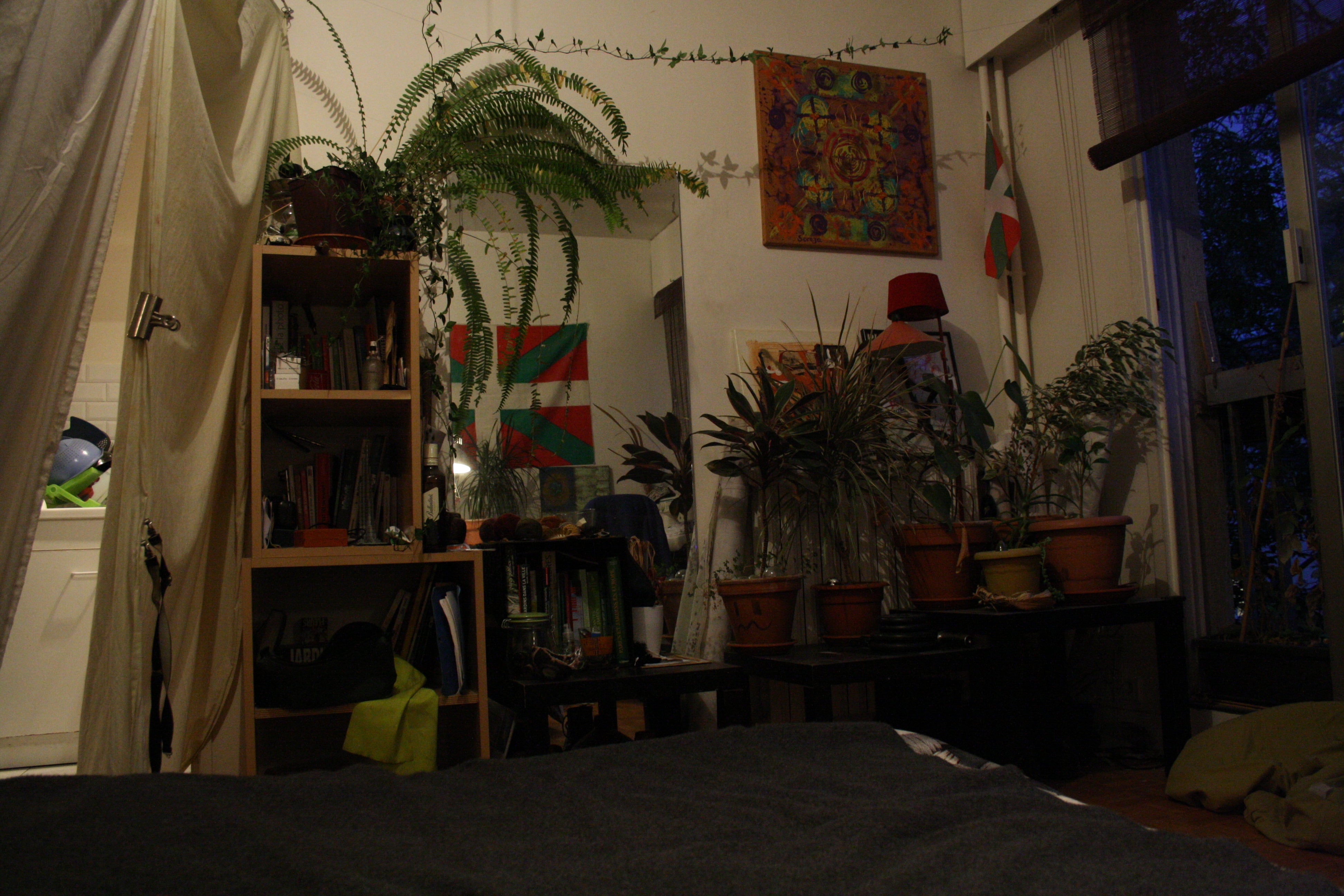 L'appartement comporte 5 pièces. Une entrée qui donne sur le salon dont une partie est isolée par un rideau (chambre louée). La cuisine est accessible par la partie du salon non isolée. Pour accéder à la salle de bain, il faut passer par l'autre chambre (celle que j'occuperai). Cela ne pose pas de problèmes, il suffit juste d'un petit peu d'organisation. Paris, France Chambre lumineuse végétalisée Private room in rental unit vacation rental best price 9445970