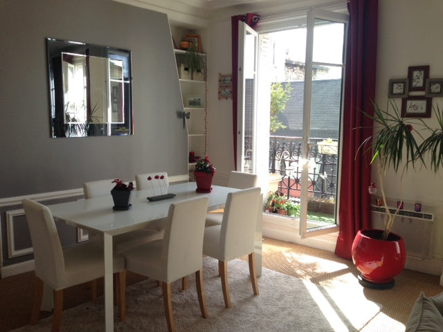 Appartement très lumineux, traversant, clair calme (chambres sur cour) salon+séjour,cheminée,très grand balcon filant sur 3 fenêtres .1 grand lit 160 et une banquette lit 140 dans la 2ème chambre.