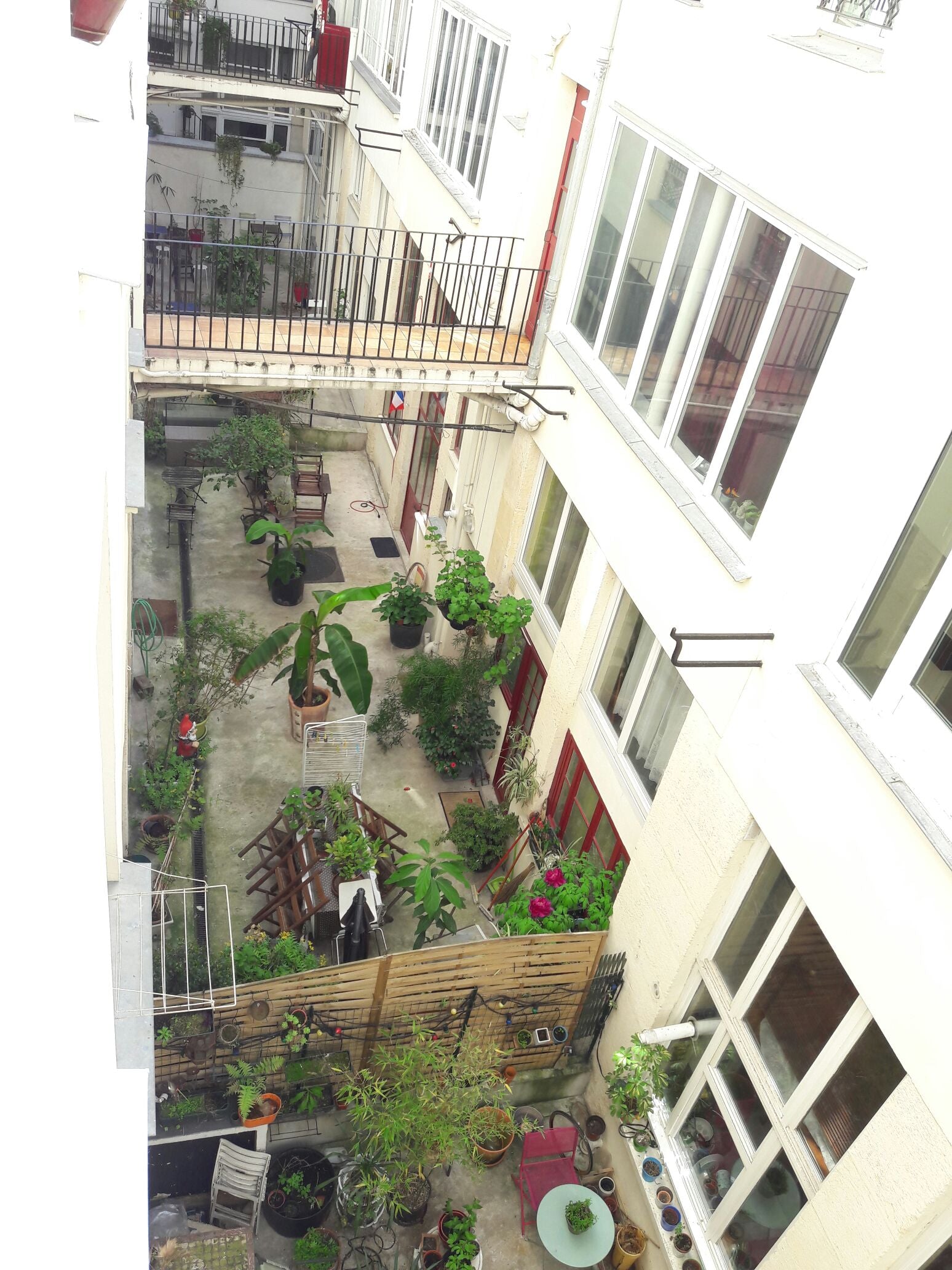 Appartement au premier sur cour mais lumineux il y a une chambre avec un lit double et un canapé dans le salon pour une personne, les deux pièces sont séparées par une petite baie vitrée avec un rideau. Cuisine équipée sans micro-ondes. Calme en général, parfois quelques musiques interressantes viennent effleurer l'oreille.