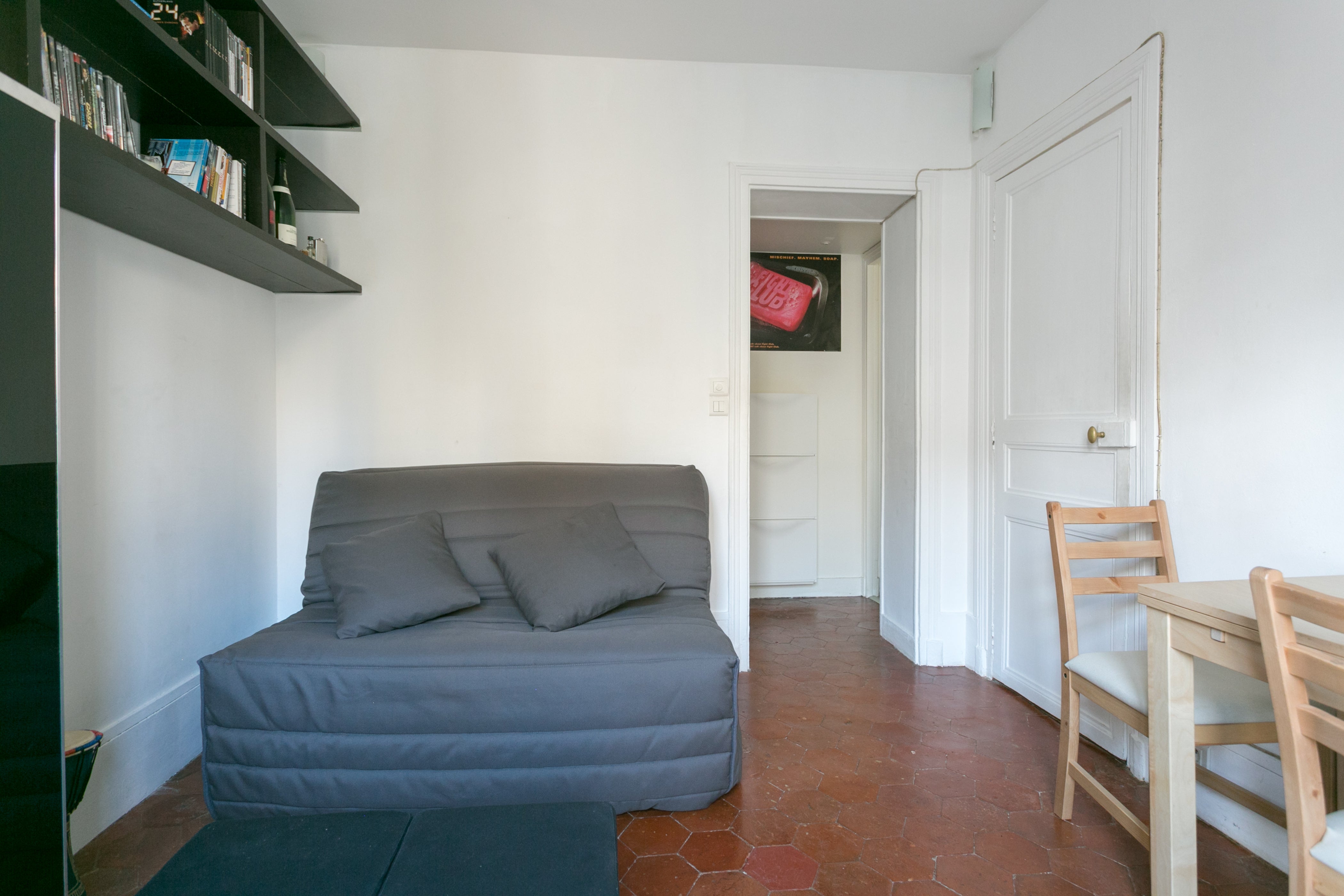 L'appartement, situé au 3ème étage sans ascenseur, donne sur une cour intérieure. Il est donc très calme, en retrait de l'avenue du Maine. Il est parfaitement agencé pour y vivre à 2 et peut accueillir 4 personnes pour un week-end ou un court séjour. La petite cuisine (3.5m2) est entièrement équipée : plaques électriques, évier, lave-vaisselle 6 couverts, four micro-onde + grill, congélateur, réfrigérateur, cafetière, bouilloire. La salle de bain (2m2) comprend une douche, un lavabo et un WC. La chambre (7,5 m2), donnant sur cour, comprend un vrai grand lit (2*80cm*200cm). Le salon-salle à manger (10m2) comprend un canapé (140cm) dépliable en lit, un Paris, France 2 pièces 24m2 Montparnasse - Gaîté - Daguerre Entire rental unit vacation rental best price 10468308