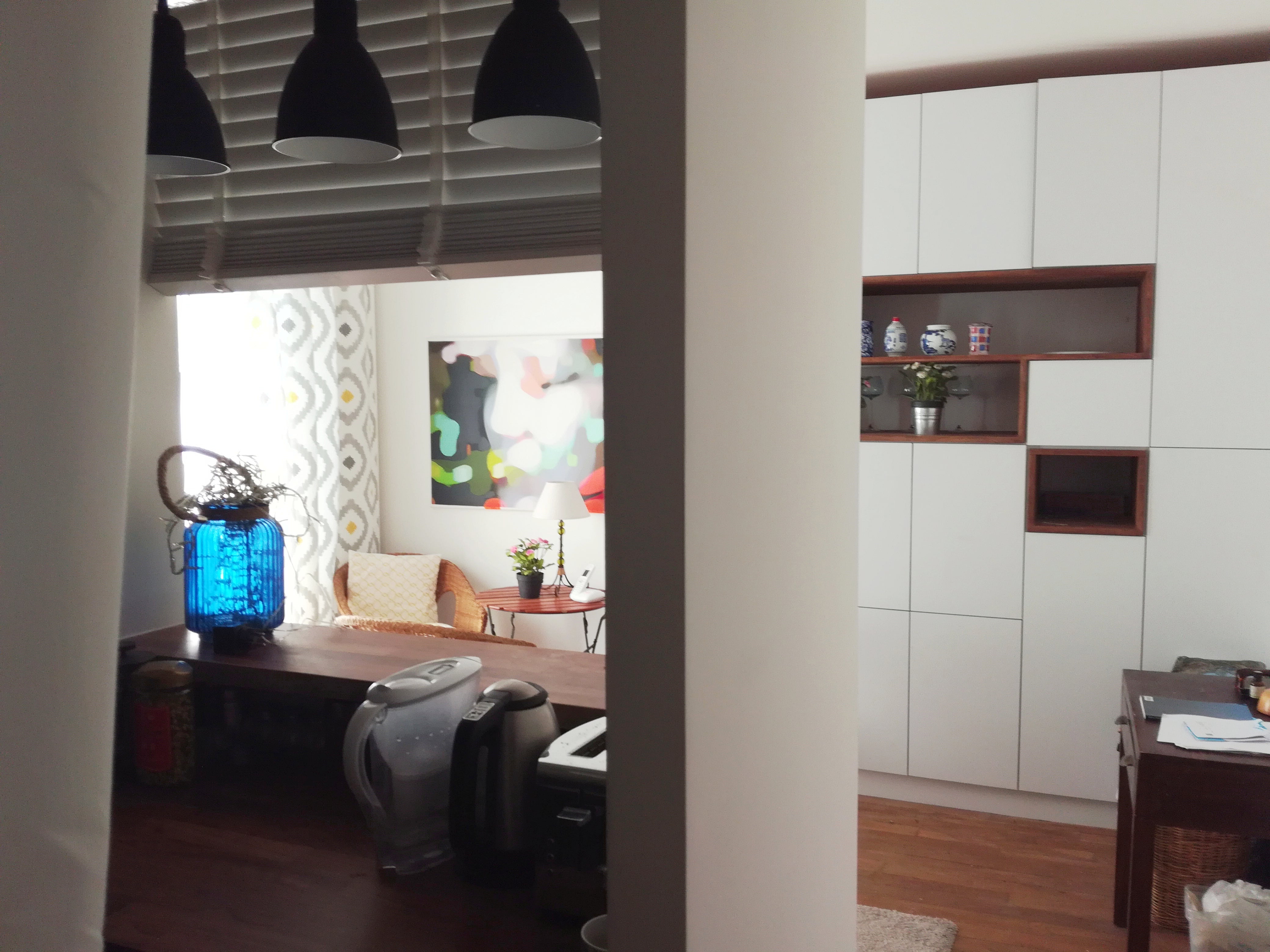 Salon : grand canapé , table pour diner , bureau pour ordinateur , téléviseur avec fibre optique .