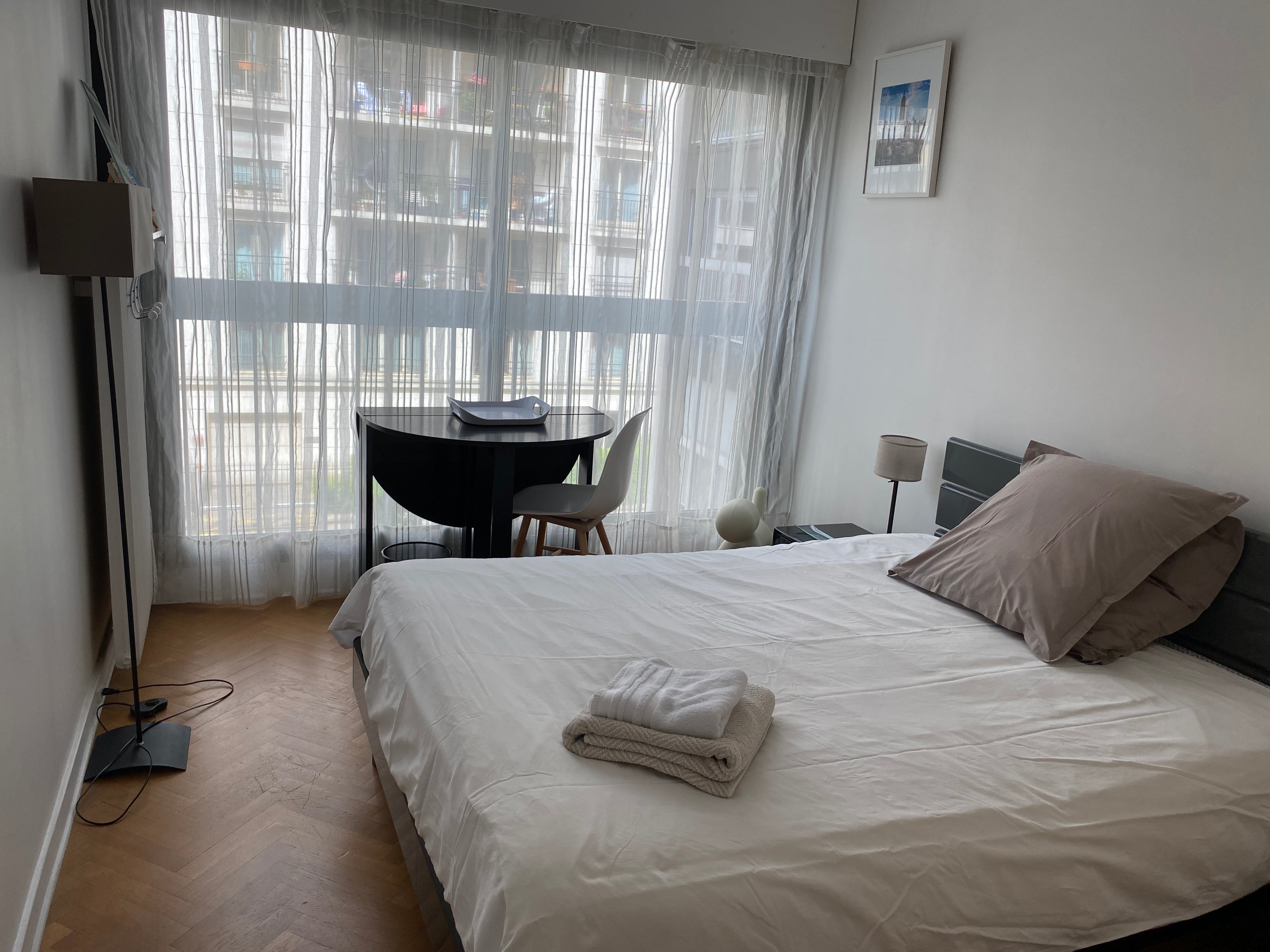 Immeuble moderne sécurisé (avec badge d’accès). Chambre confortable de 11 m2 avec un lit de 140 cm, double vitrage et volets roulants électriques.
