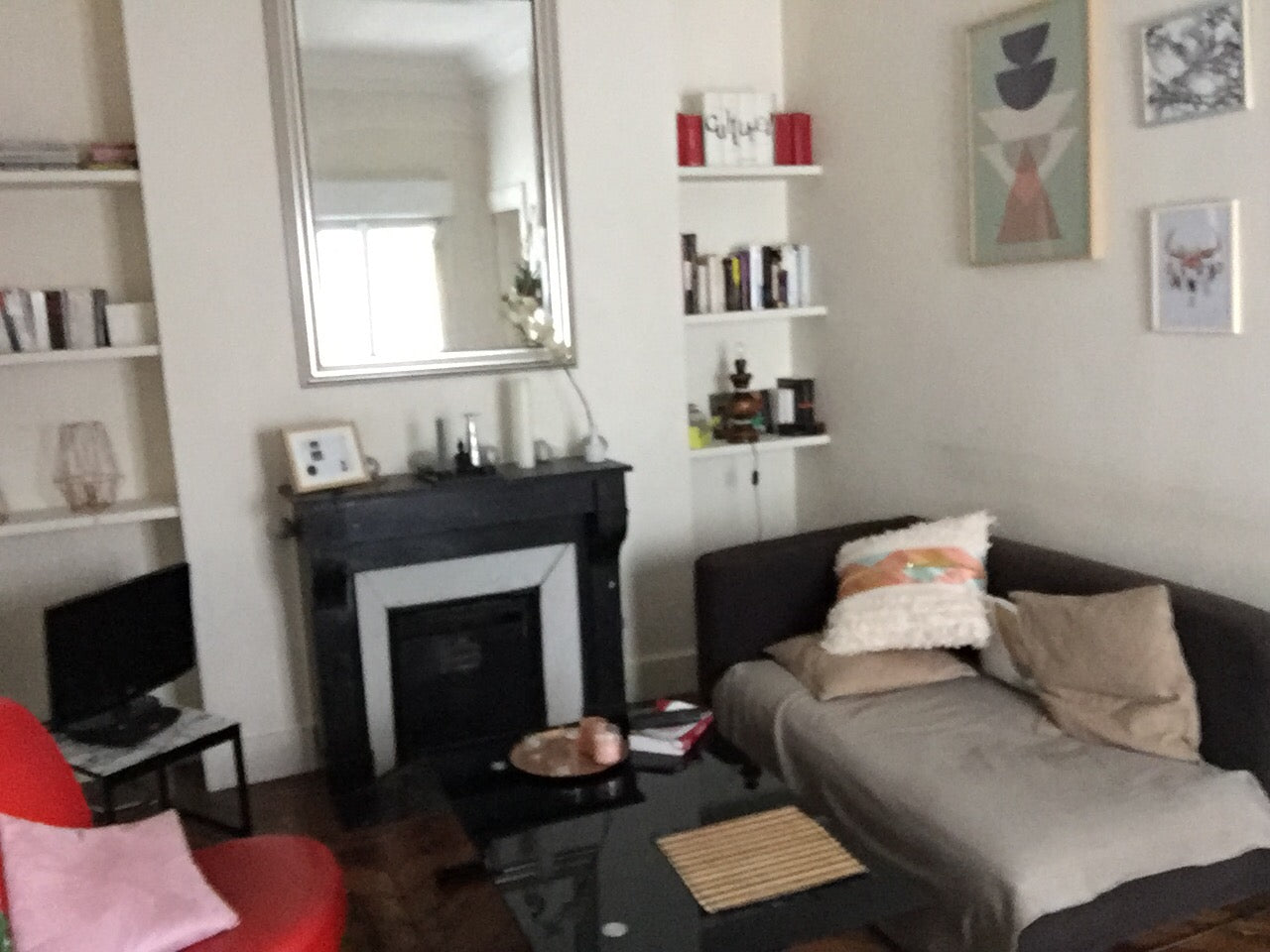 Appartement typique parisien cheminée et parquet, entièrement équipé (cuisine avec four et micro-ondes, machine à laver)