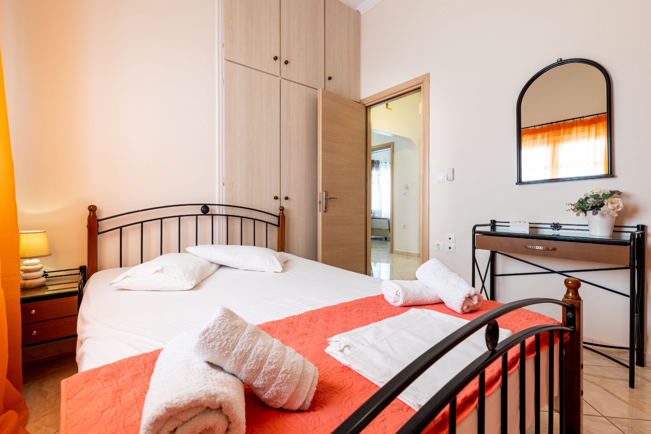 All shops, restaurants, bars as well as the port, bus/taxi station are within 1 to 5 minutes walking. The nearest beach is just down the road (40m.) and various other beaches can be reached on foot at 15-20min., like Livadia beach & Souvlia beach which are located about 1,5km away.