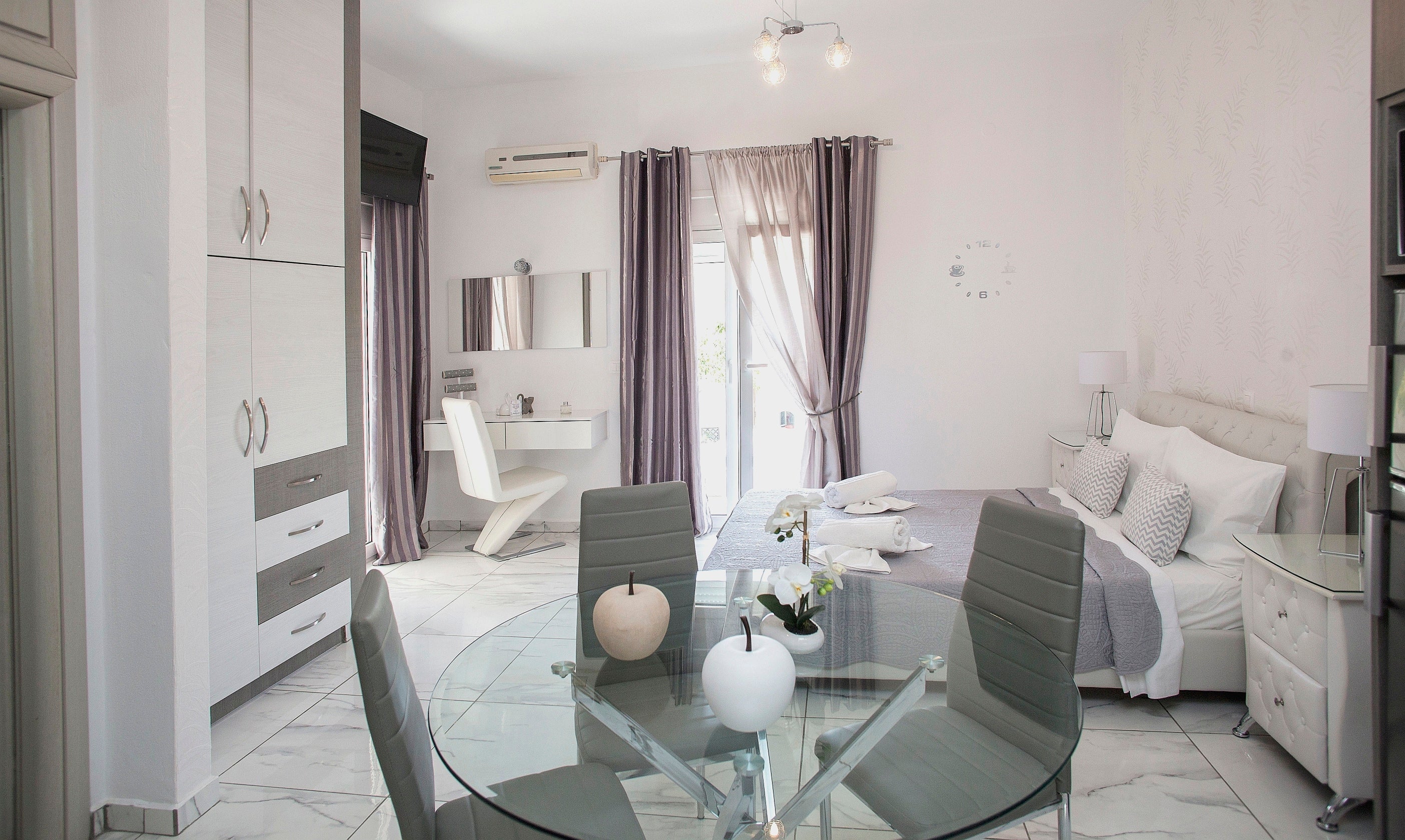 The ''Diogenis Luxury Apartment'' is located just 2.5 km from the city center and just 50 meters from a sandy beach. Around the apartment, there are shops of all kinds (supermarkets, restaurants, beach bar, cafe etc.) The apartment has air conditioning, free Wifi, satellite TV, fully equipped kitchen and free toiletries.