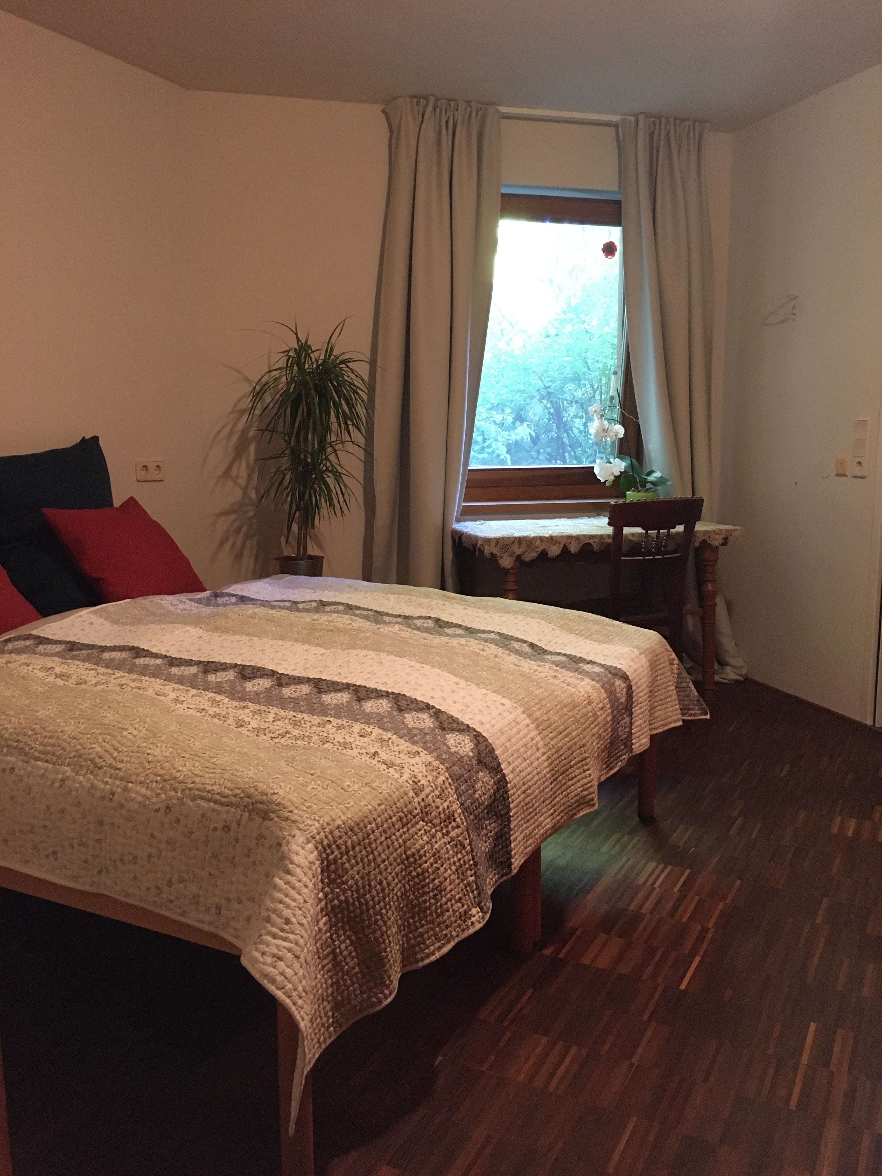 Unser Haus hat zwei Stockwerke in denen wir ein Zimmer im Erdgeschoss und drei Zimmer im 1. Stock vermieten. Im Erdgeschoss gibt es eine Küche und ein großes Wohnzimmer mit großem Fenster hin zu Garten. Da mein Sohn vor Kurzem ausgezogen ist haben wir jetzt viel Platz. Im ersten Stock befindet sich auch mein Zimmer und mein Atelier. Wir haben zwei Katzen, die meistens im Garten sind, hin und wieder aber auch ins Haus kommen. Cozy home as close to nature as to Vienna 2 Private room in home vacation rental best price 39917661