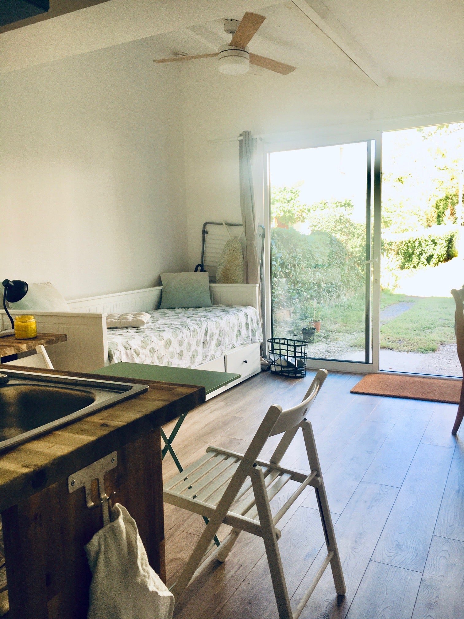 A proximité du parc des Expositions de Bordeaux, des axes routiers, des transports en commun, tout en restant au calme, vous bénéficierez d'un charmant studio indépendant sur une parcelle de maison.