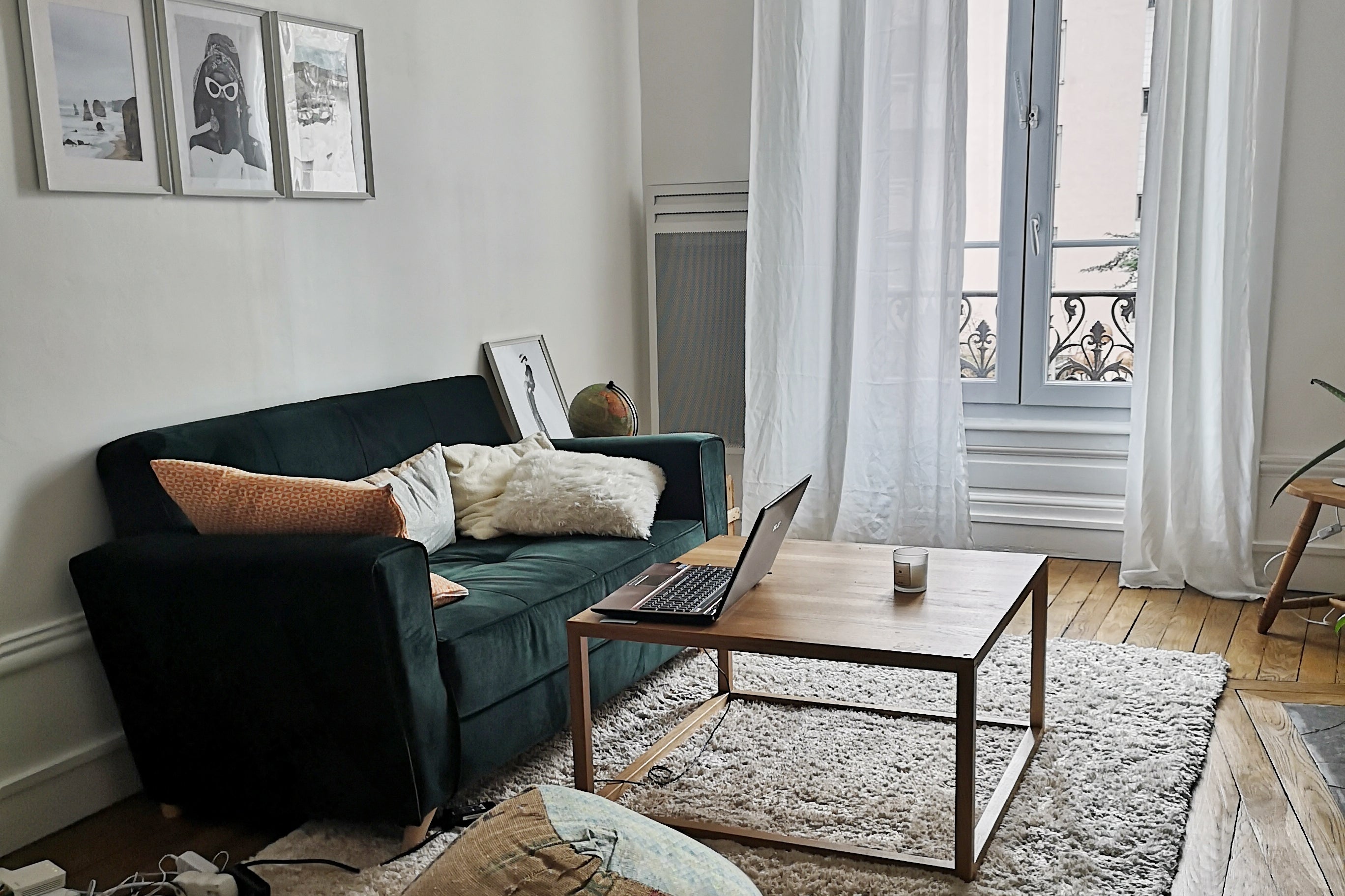 Appartement typiquement Lyonnais avec parquet, cheminée et belle hauteur sous plafond. Le lit (c'est un vrai lit) est dans une alcôve qui donne sur le salon.