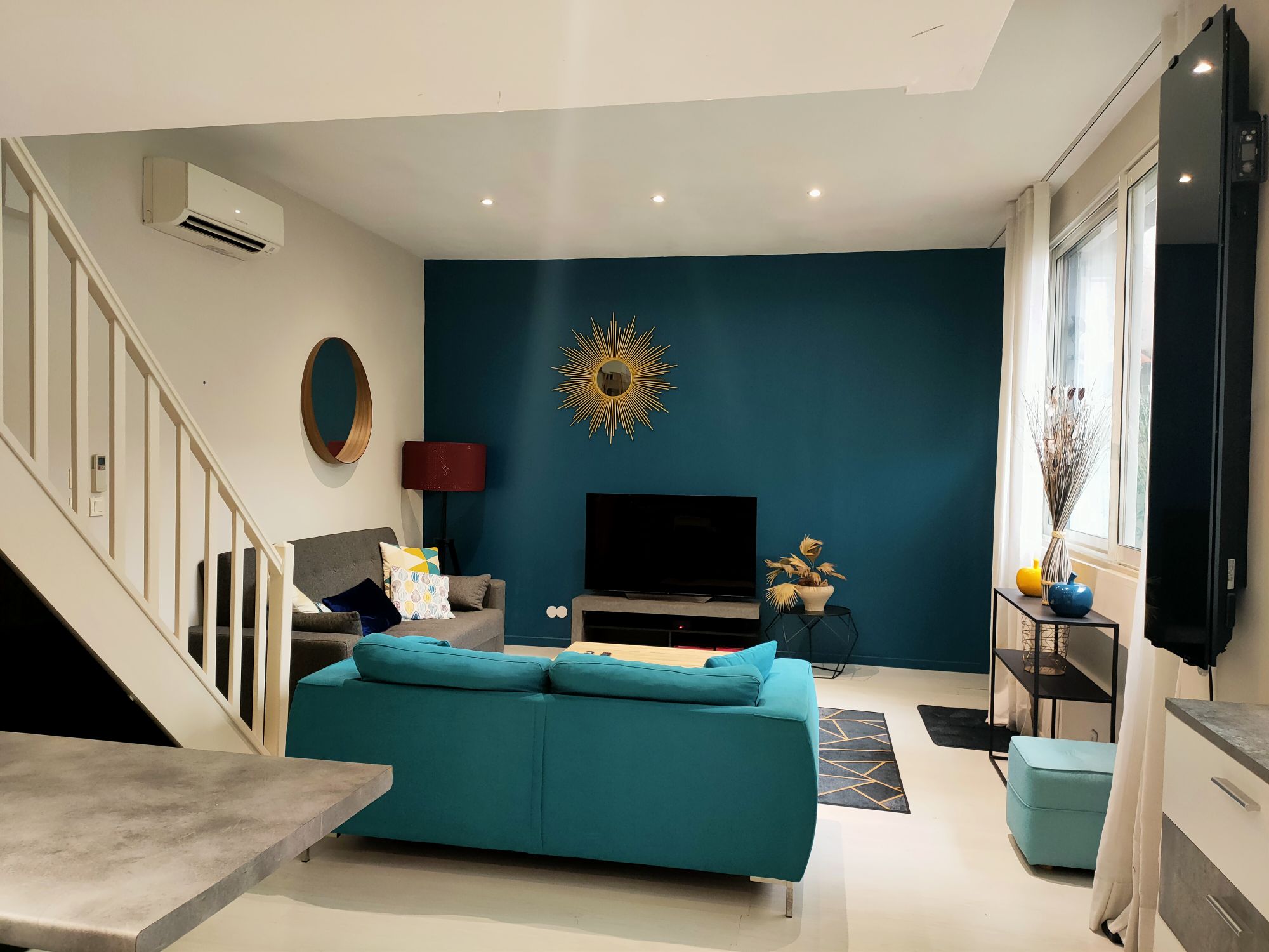 Cuisine équipée, électroménager et vaisselle. Cafetière. Bouilloire. Wifi , TV .