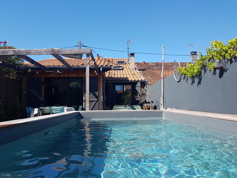 Agréable échoppe avec un grand salon où tout le monde peut vivre, jouer, manger... idéale pour une famille ! Pas d’embouteillage : il y a 2 salles de bains (une douche et une baignoire) et 2 W-C. Une jolie terrasse en bois vous attend pour déguster un bon Bordeaux sous les guirlandes guinguettes...