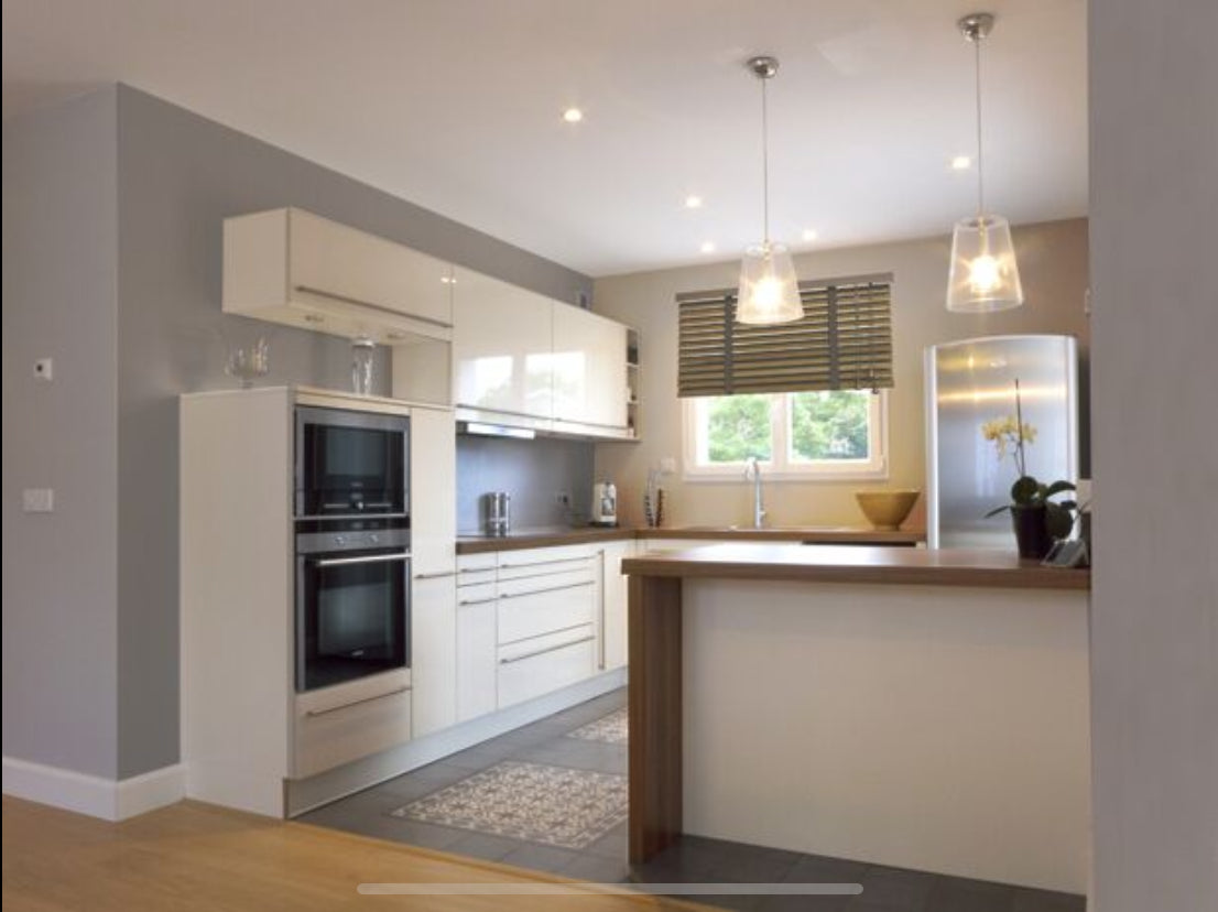 La cuisine entièrement équipée ( lave vaisselle, four micro onde plaque induction, four, Frigidaire-congélateur, machines à café nespresso et filtre, et grille pain) est ouverte sur la pièce de vie salon séjour . La pièce de vie est orientée sur le jardin (sud -ouest) et une grande terrasse bois.