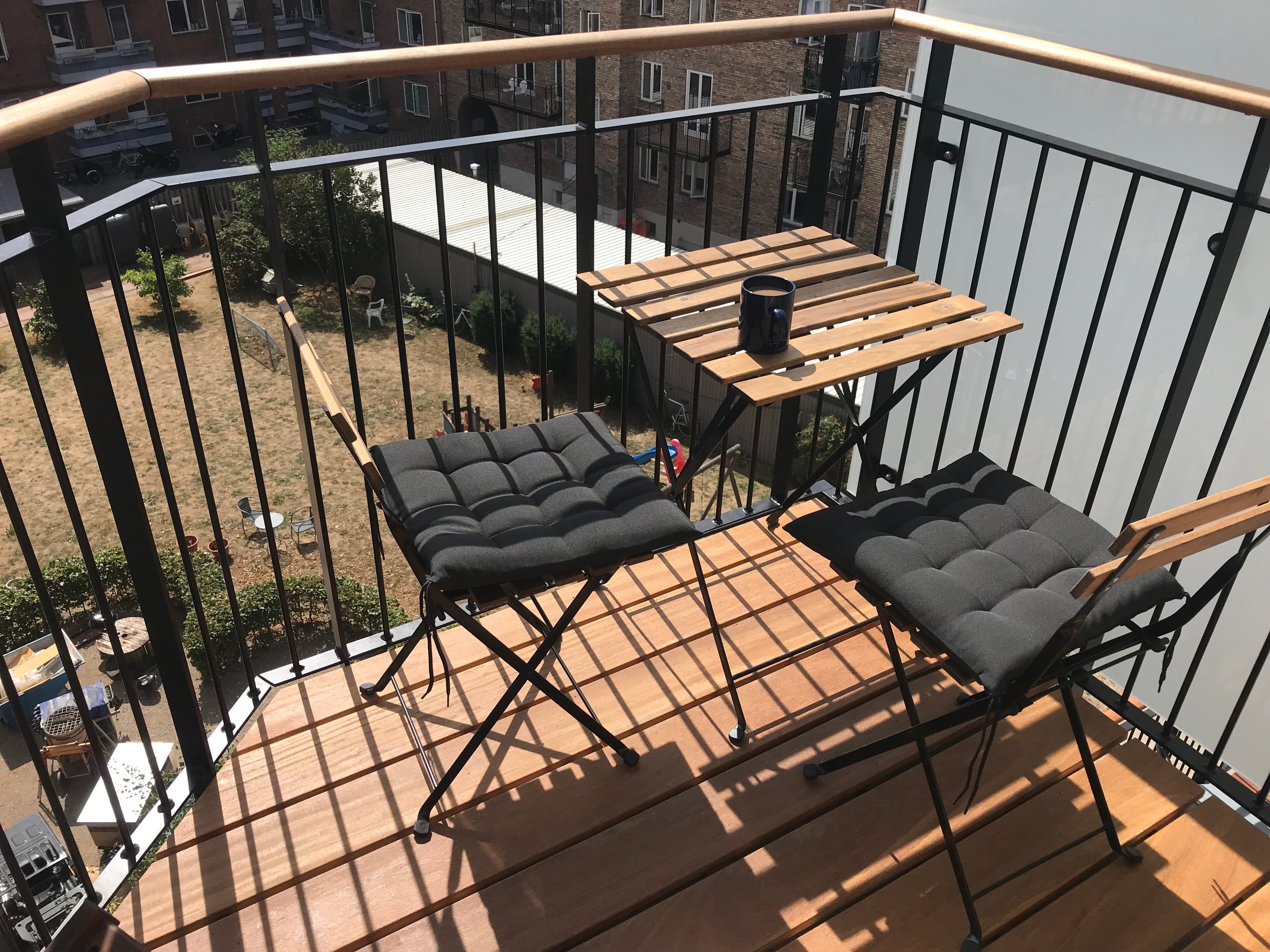 The apartment has a balcony in extension to the bedroom, where you can enjoy a morning coffee or late night drink.