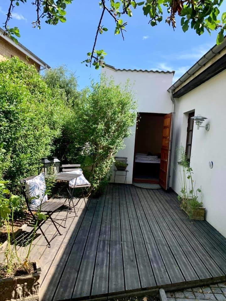 ["Wifi", "Carbon monoxide alarm", "Dishes and silverware", "Long term stays allowed", "Private entrance", "Heating", "HDTV with Chromecast", "Smoke alarm", "Patio or balcony", "Kitchen", "Backyard", "Refrigerator", "Free parking on premises", "Shampoo", "Dedicated workspace", "Hangers", "Iron", "Hair dryer", "Essentials"]