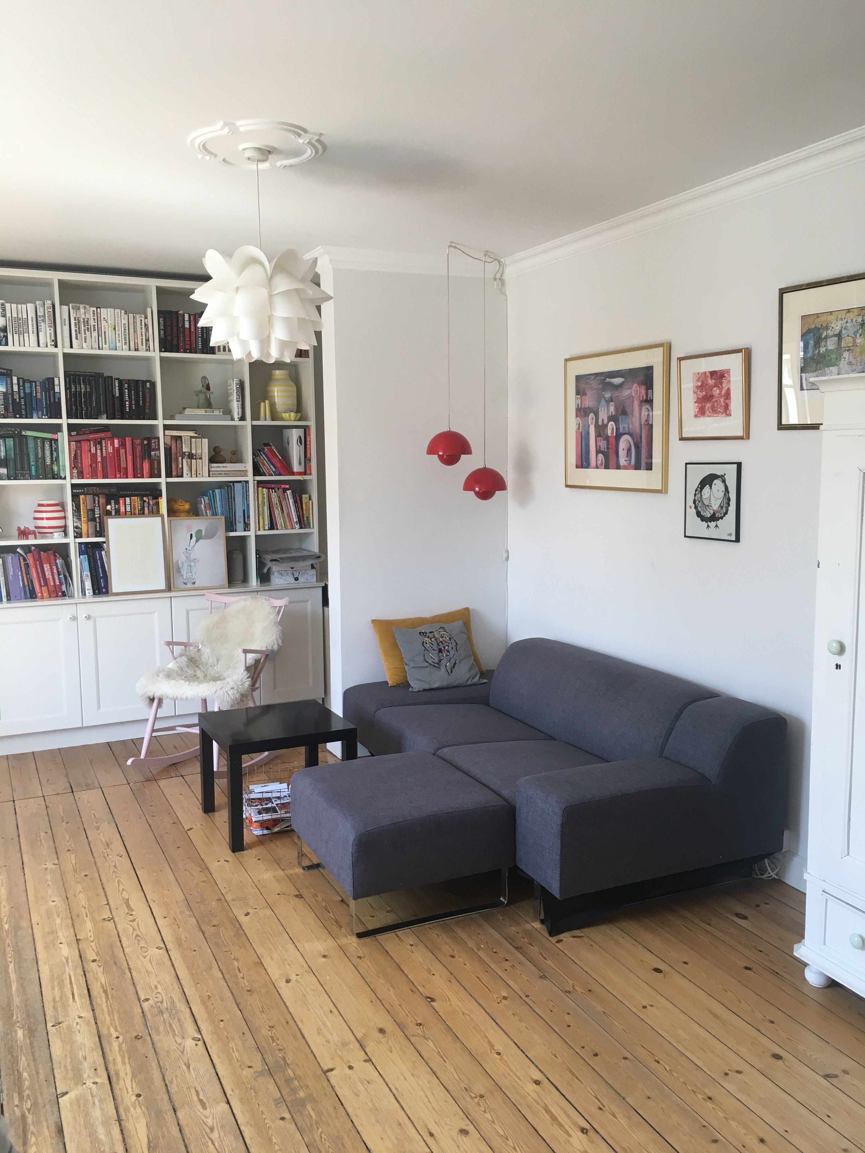 Lejligheden består af fire dejlig store og lyse rum, hvoraf stue og soveværelse i forlængelse lejes ud. Der er massere af plads til parret, venneparret eller familien med et lille barn, der ønsker plads, luft og fantastisk beliggenhed.