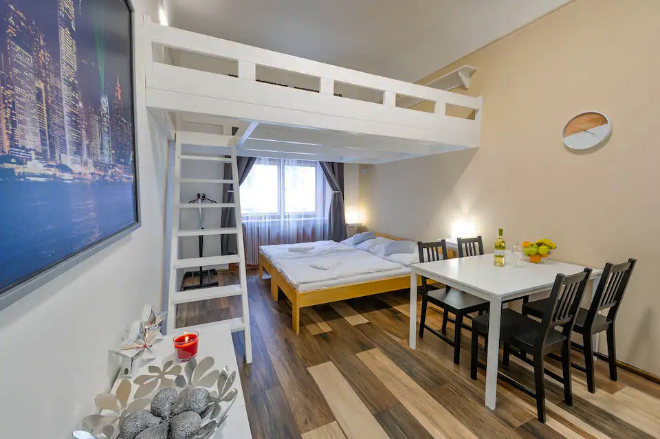 This beautiful apartment is located in the historical center of Prague 1. The lovely bedroom has a double bed, one more double loft bed and the wardrobe for your clothes. In the kitchen, among the basic dishes you can find also a microwave, electric stove and toaster. Of course there is also prepared a selection of teas, sugar and flavorings. The bathroom is equipped with a modern shower with shampoo and shower gel included. A hairdryer is provided. Prague, Czechia Elisabeth Old Town Apartment 2 Entire rental unit vacation rental best price 45075498