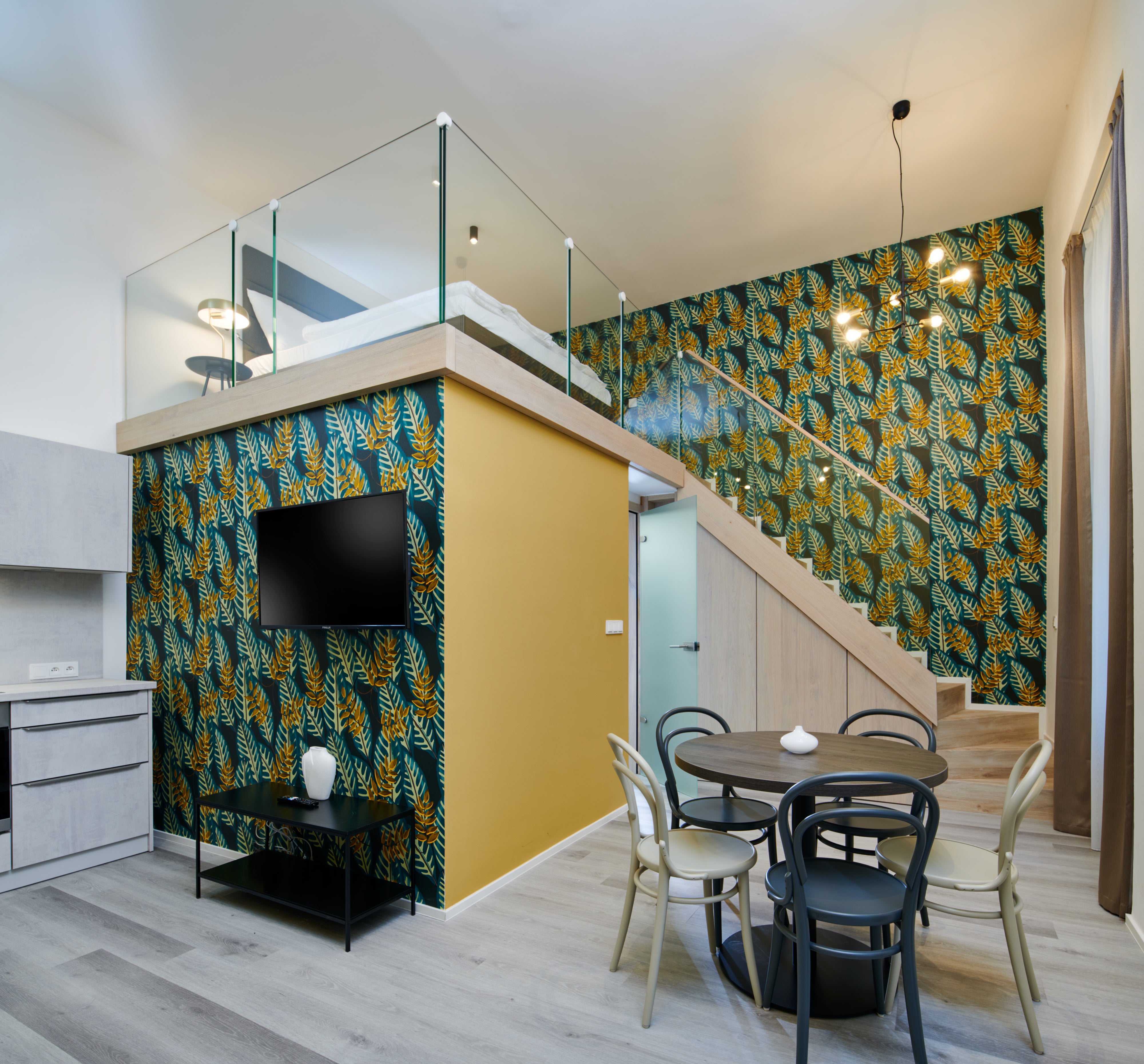 Among our newest residences is this collection of apartments located right on Wenceslas Square close to the National Museum looking down the square over the space famed for the pro-democracy demonstrations in 1989. Wenceslas Square is the busy bustling center of Prague with many shops and restaurants yet the apartments are in a quiet location. The apartments are located in three buildings of different interior designs, accessed through a common courtyard.