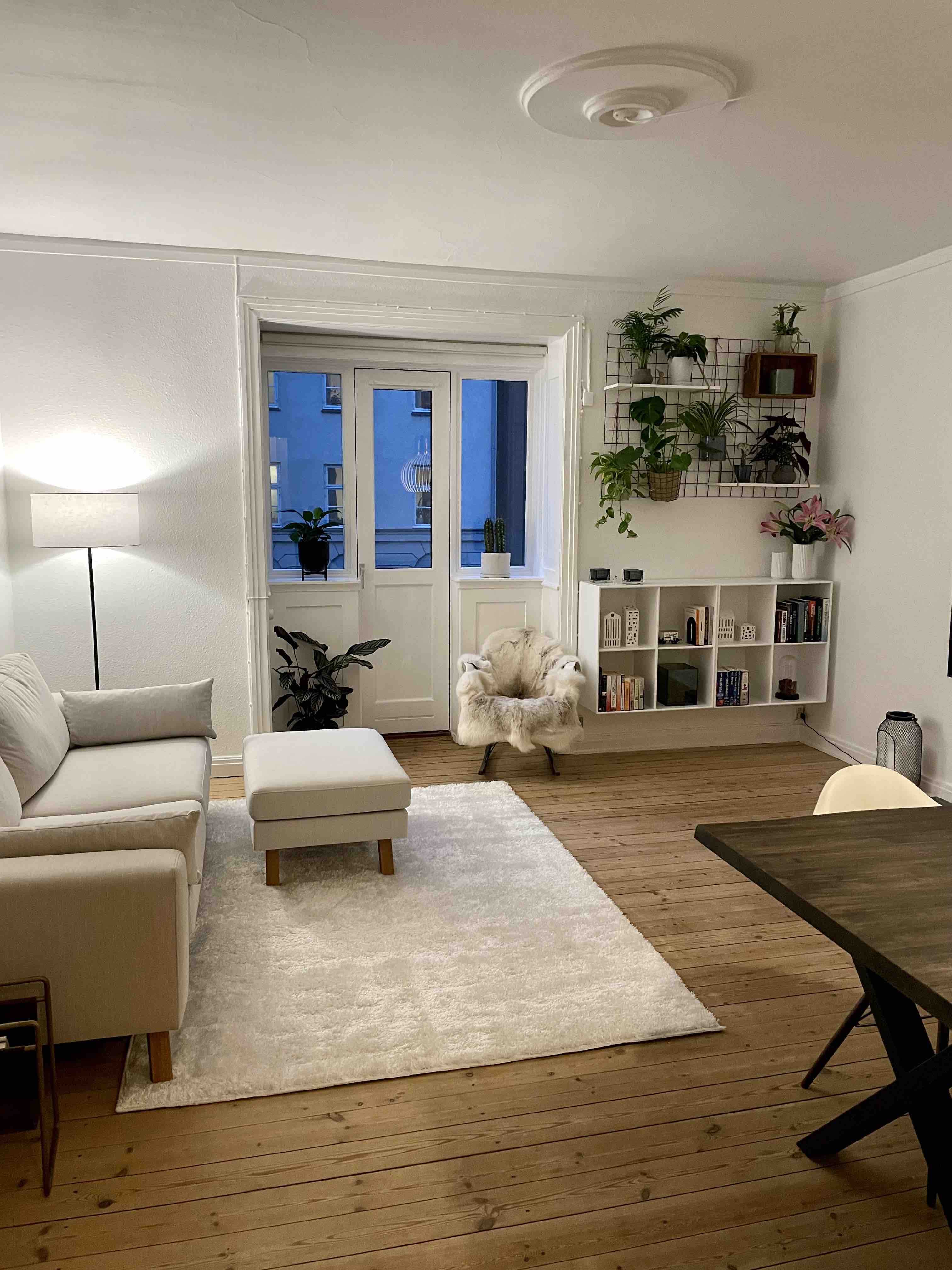 Stylish and homey one bedroom apartment with large living room, kitchen, queen size bed (160 cm) and a newly renovated bathroom. You’ll find a dining table in the living room a comfortable couch and TV with access to Netflix. There is a small balcony connected to the living room with two chairs and a hanging table. The bedroom has a double comforter and blackout curtains. The kitchen is fully equipped with free coffee, olive oil, salt, pepper etc. The shower has shampoo, conditioner, shower gel and towels. For a full list of amenities please see the profile.