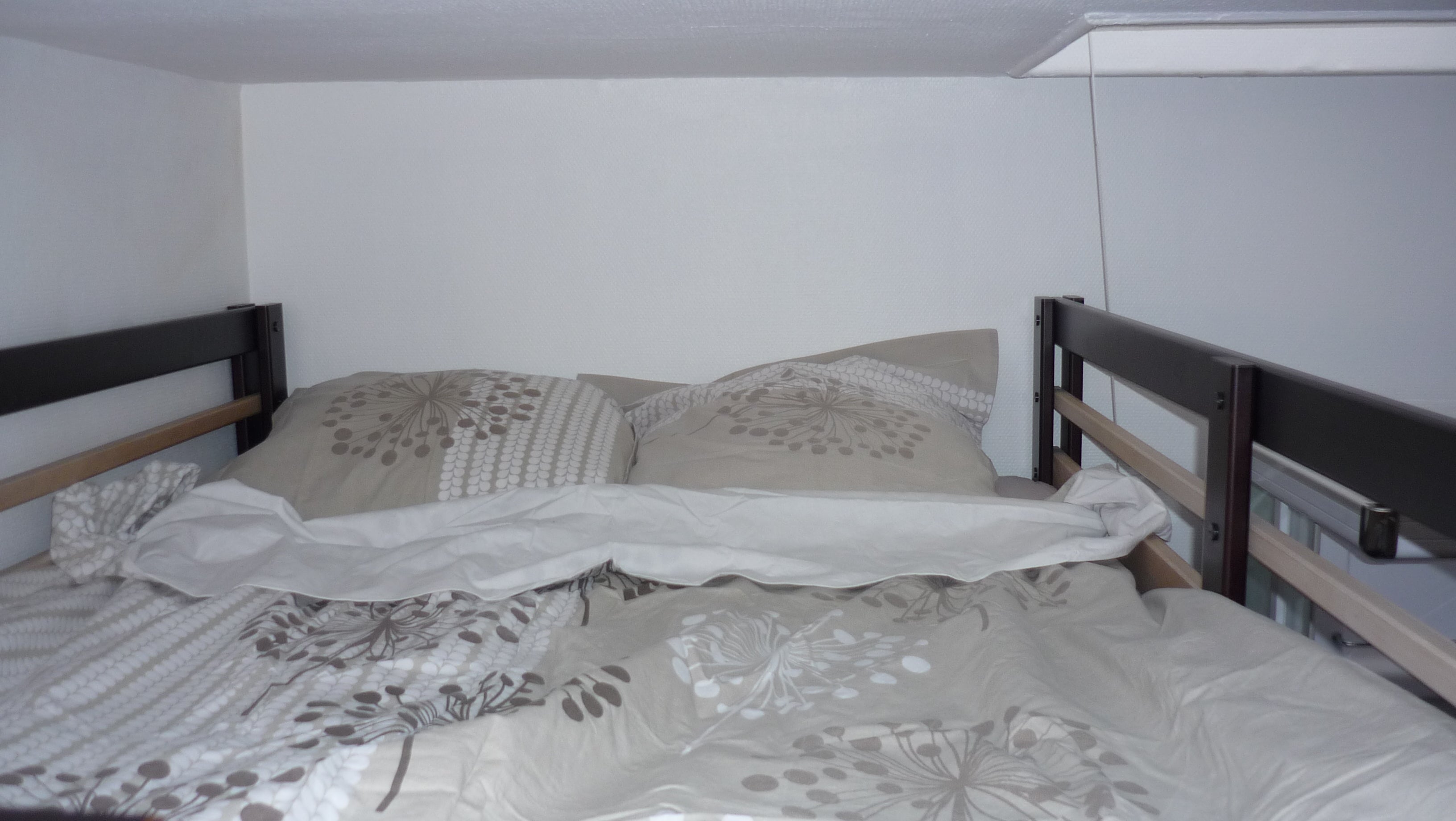 The room is clean and well laid out with a mezzanine, a shower cabin and a sink. The room has a skylight. It also has a kettle for making coffee or tea. The powder room is on the landing.