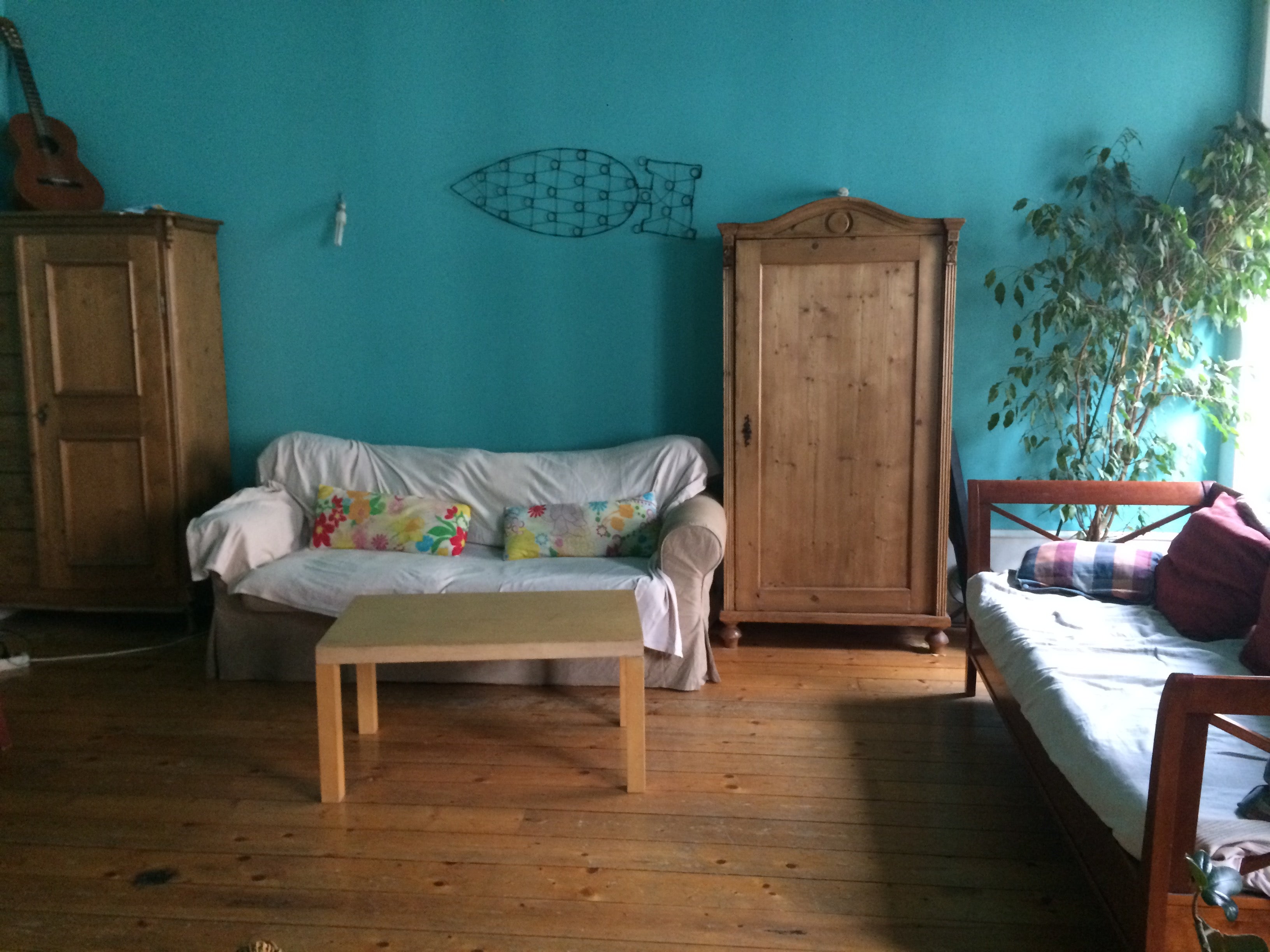 Les 3 chambres (et la salle de bain) à louer sont situées à l'étage, elles sont isolées du reste du logement. Une des chambres à lit double n'est fermée que par un rideau.