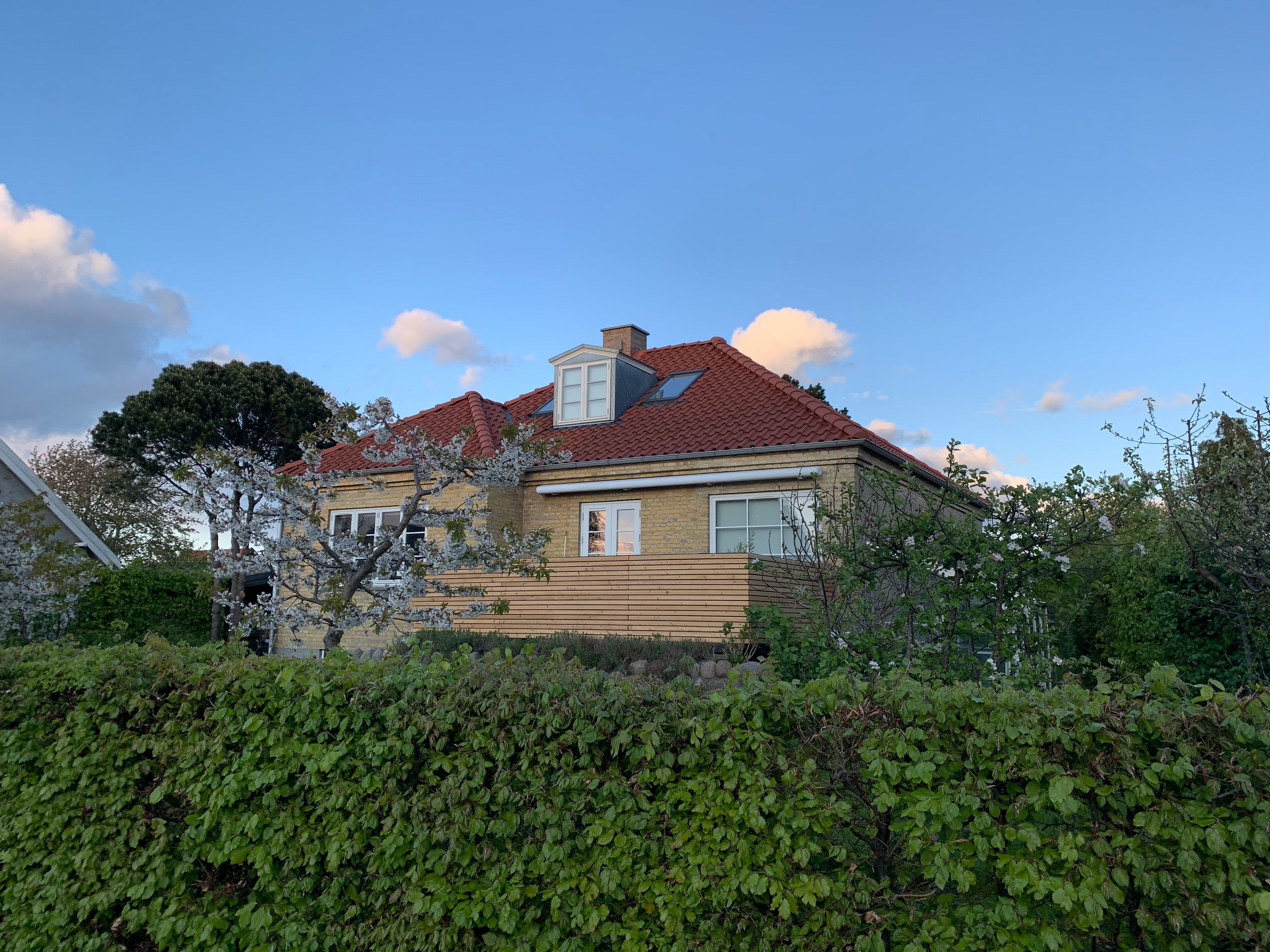 Lovely fully renovated old house (1935) situated on top of a hill in a quiet family friendly and typical Danish historical neighborhood, 6 km from CPH centre. Lots of light and windows, 3 bedrooms + large master bedroom (whole first floor). Open kitchen and dining room. 3 terraces and a large garden with old fruit trees, hammocks and an annex (optional). 2 bathrooms. Parking on the premises. Egon the Squirrel and Carl the rabbit lives in the charming garden among old fruit trees.
