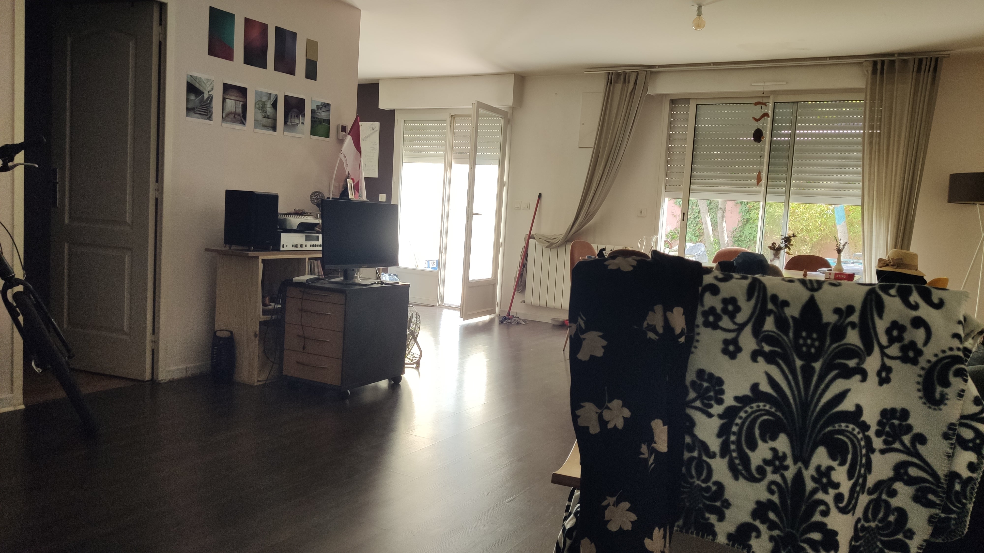 Grand salon avec cuisine ouverte, Jardin (avec table extérieur, parasol et barbecue), 3 chambres, 1 bureau avec petit espace de douche, 1 salle de bain.