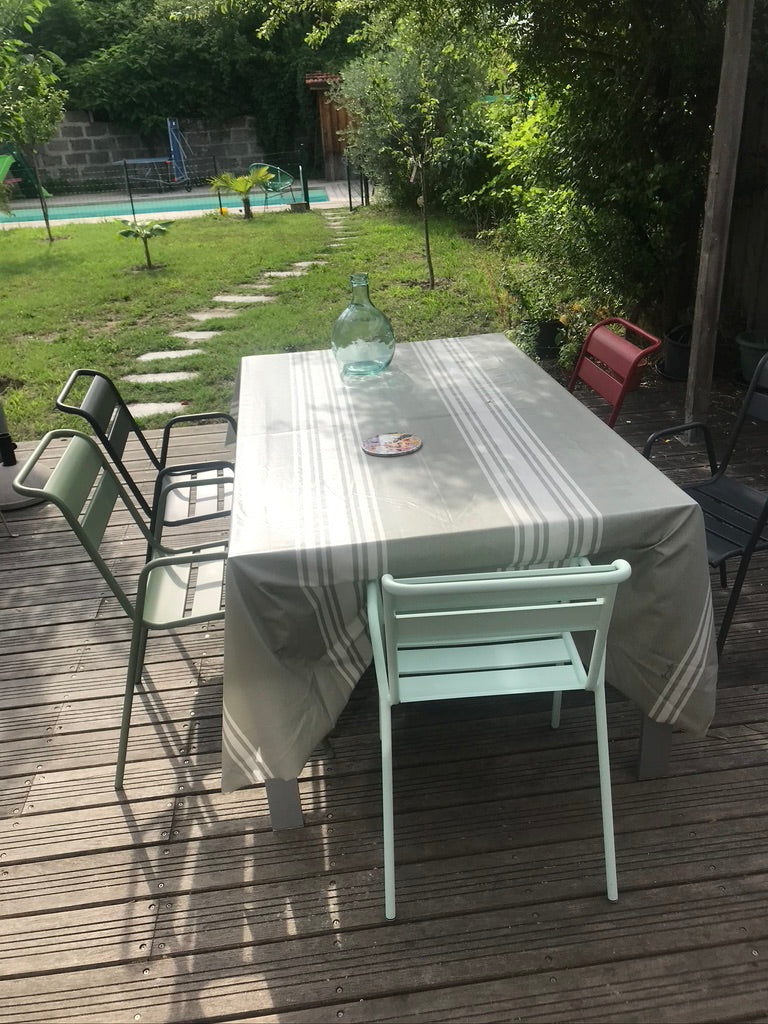 5 chambres, 1 salle de bain, 1 douche, un jardin ensoleillé avec une piscine, des chaises longues et une table de ping-pong. Bègles, France Une maison au calme à proximité de Bordeaux Entire townhouse vacation rental best price 50790262