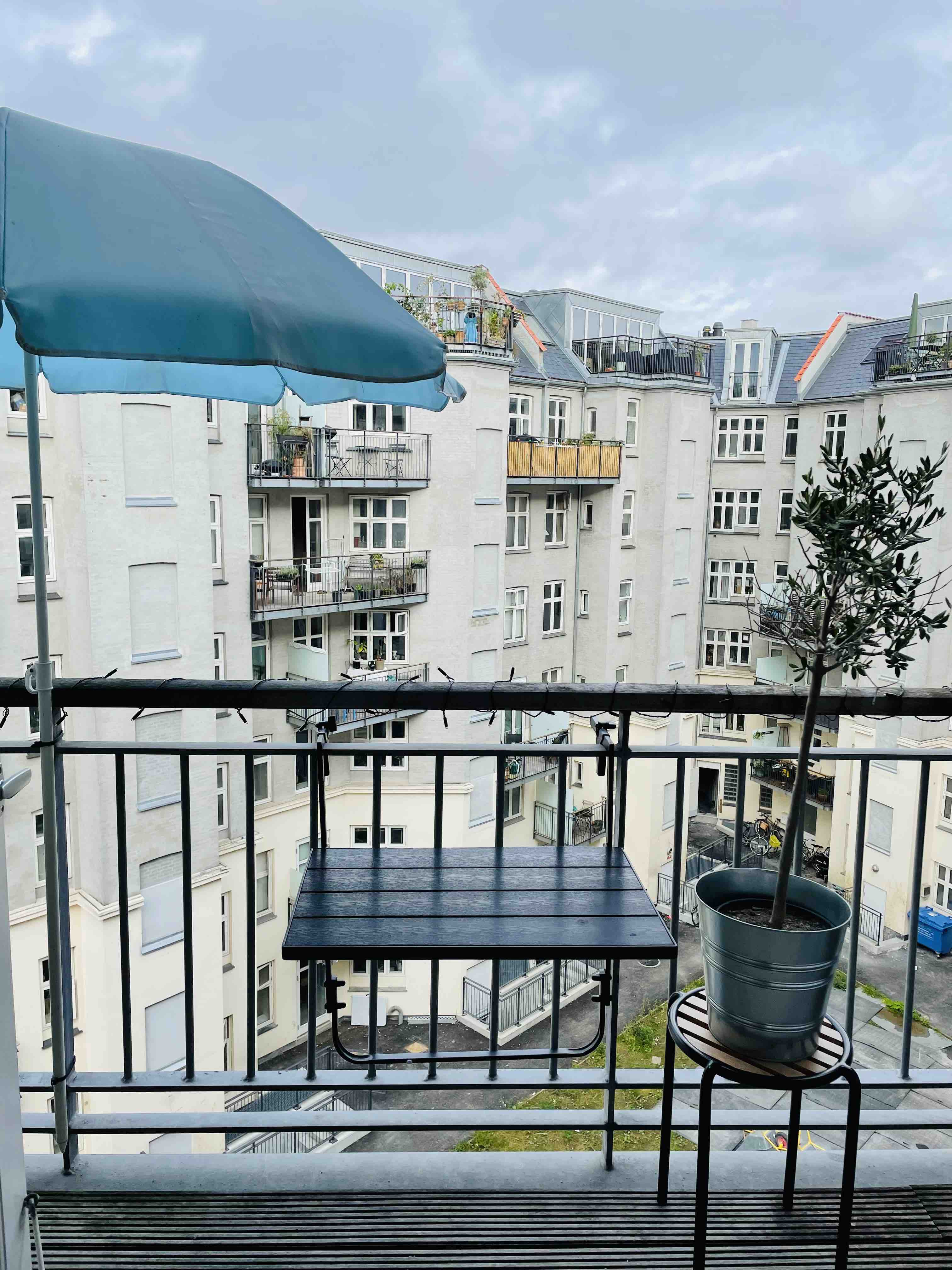 Værelse udlejes med dobbelt seng, skabsplads og stor altan.