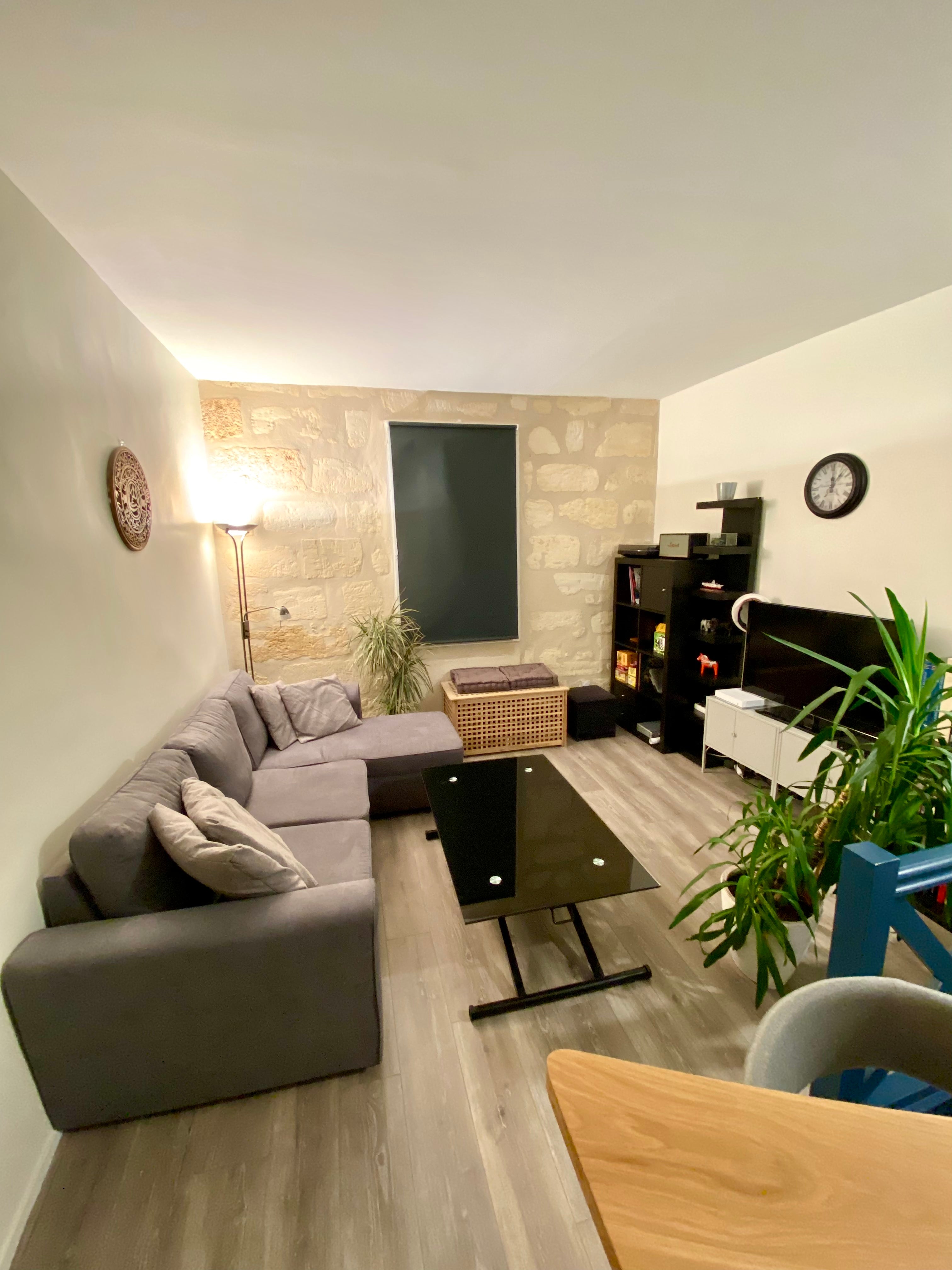 • Salon : canapé, télévision, table basse (pouvant se relever pour dîner).