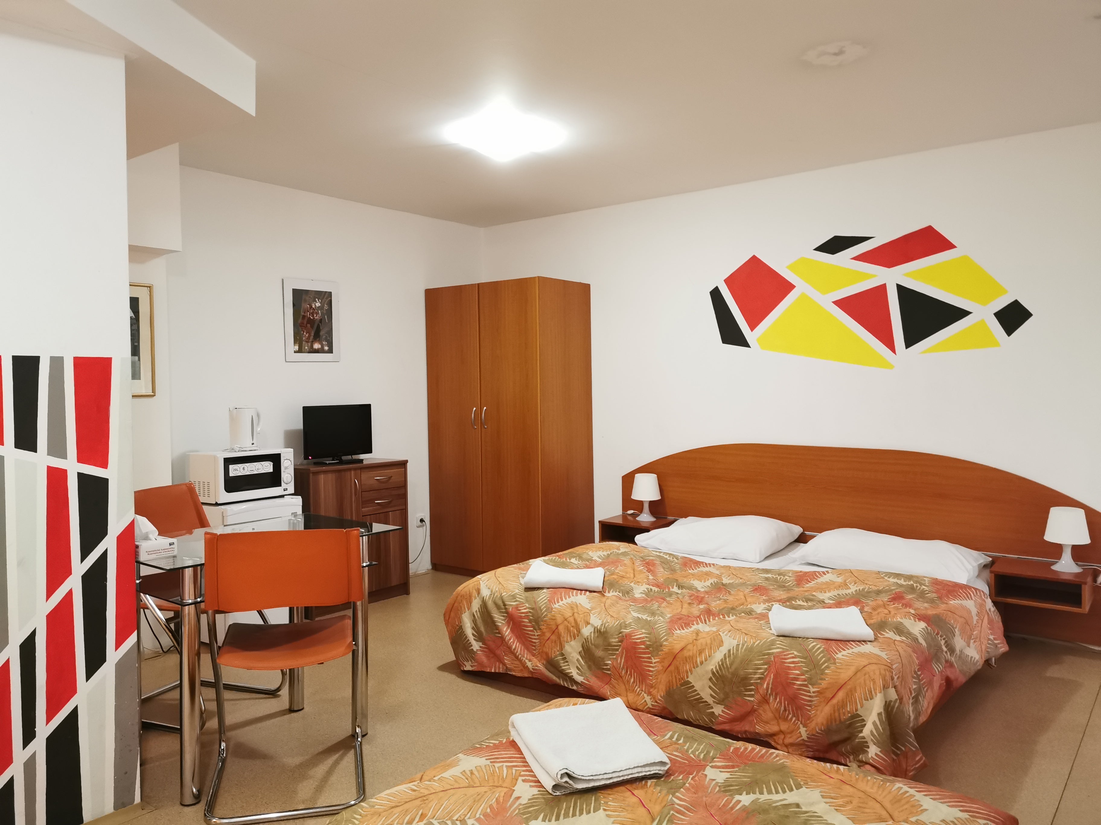 ["Hot water kettle", "Shampoo", "Bed linens", "Dining table", "Paid parking on premises", "Hot water", "TV", "Long term stays allowed", "Clothing storage: closet", "Microwave", "Lockbox", "Essentials", "Wifi", "Hangers", "Hair dryer", "Mini fridge", "Shower gel", "Central heating"]