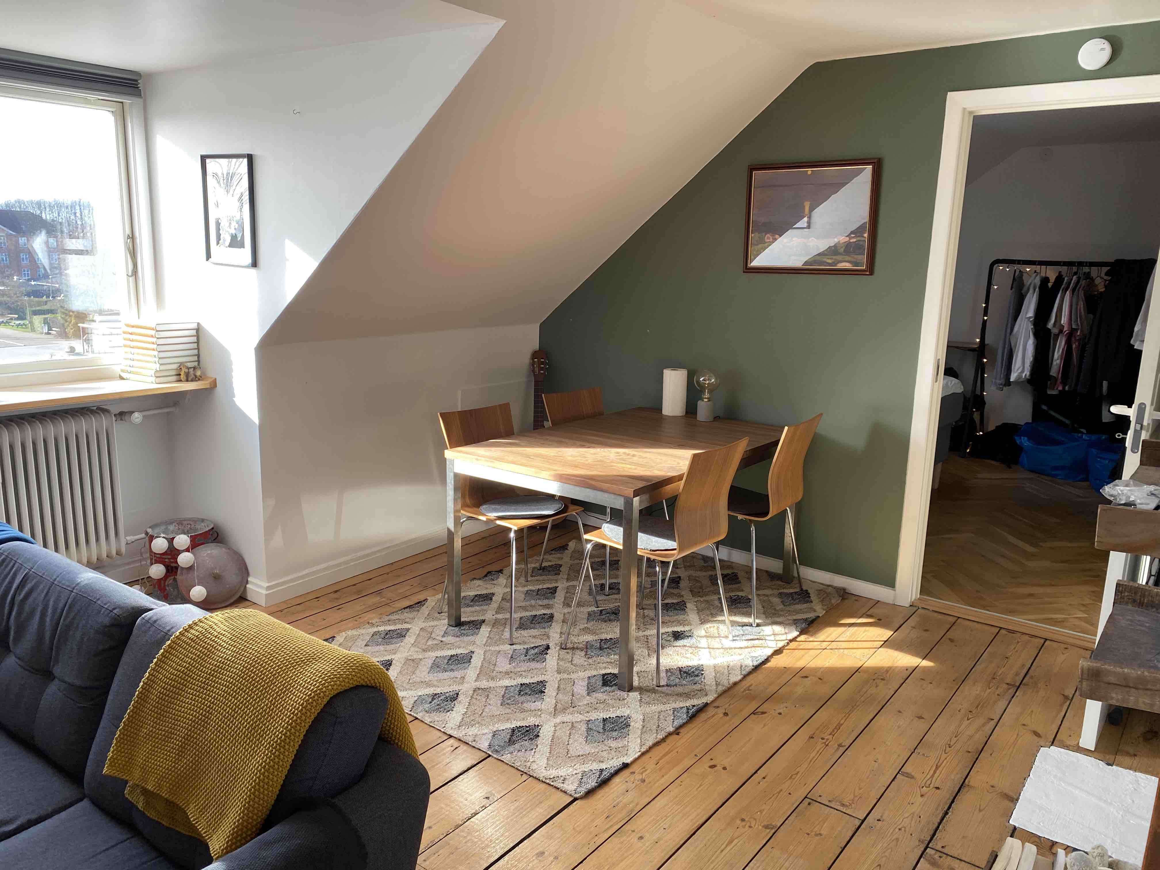 This charming apartment is located in the northern part of Copenhagen, right next to a big green area with different sport activities, and is perfect for a couple or a small family, with a kitchen and living room in one, a separate bedroom (queen size bed) and a bathroom.