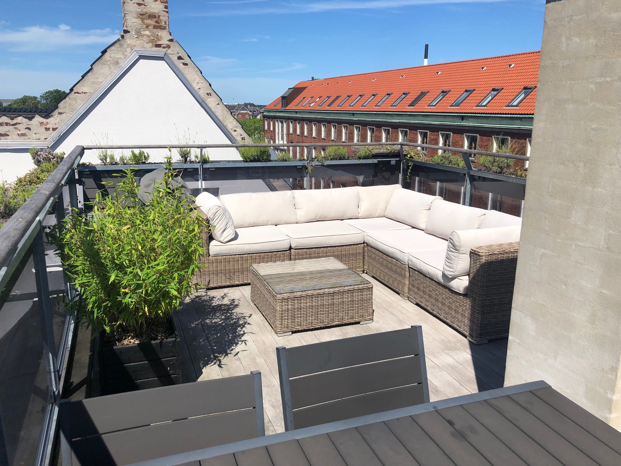 Top floor apartment with 3 rooms and private rooftop terrace located at central Copenhagen (Frederiksberg). Next to metro, Frederiksberg Mall, Frederiksberg Have, shopping district Gammel Kongevej and only 15 min walking distance tlo the Central station / Tivoli. The apartment offers bedspace for up to 5 persons, a large kitchen area and combined dining / living room. A baby bed can also be provided upon request. Private rooftop terrace Entire rental unit vacation rental best price 36460710