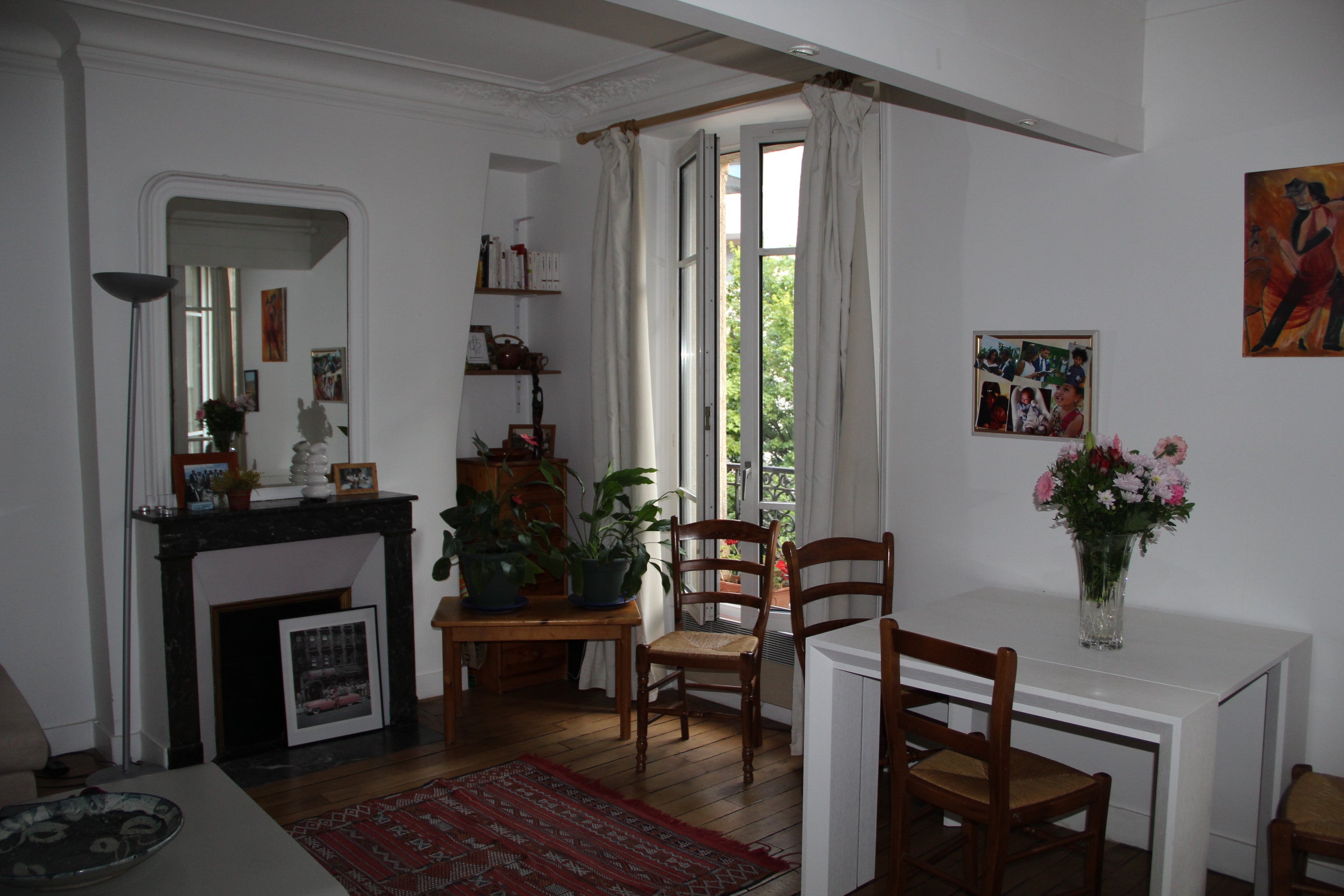 Un salon ensoleillé avec cheminée, canapé, piano, une chambre une salle de bain Paris, France Proche de Montmartre Entire rental unit vacation rental 7200701